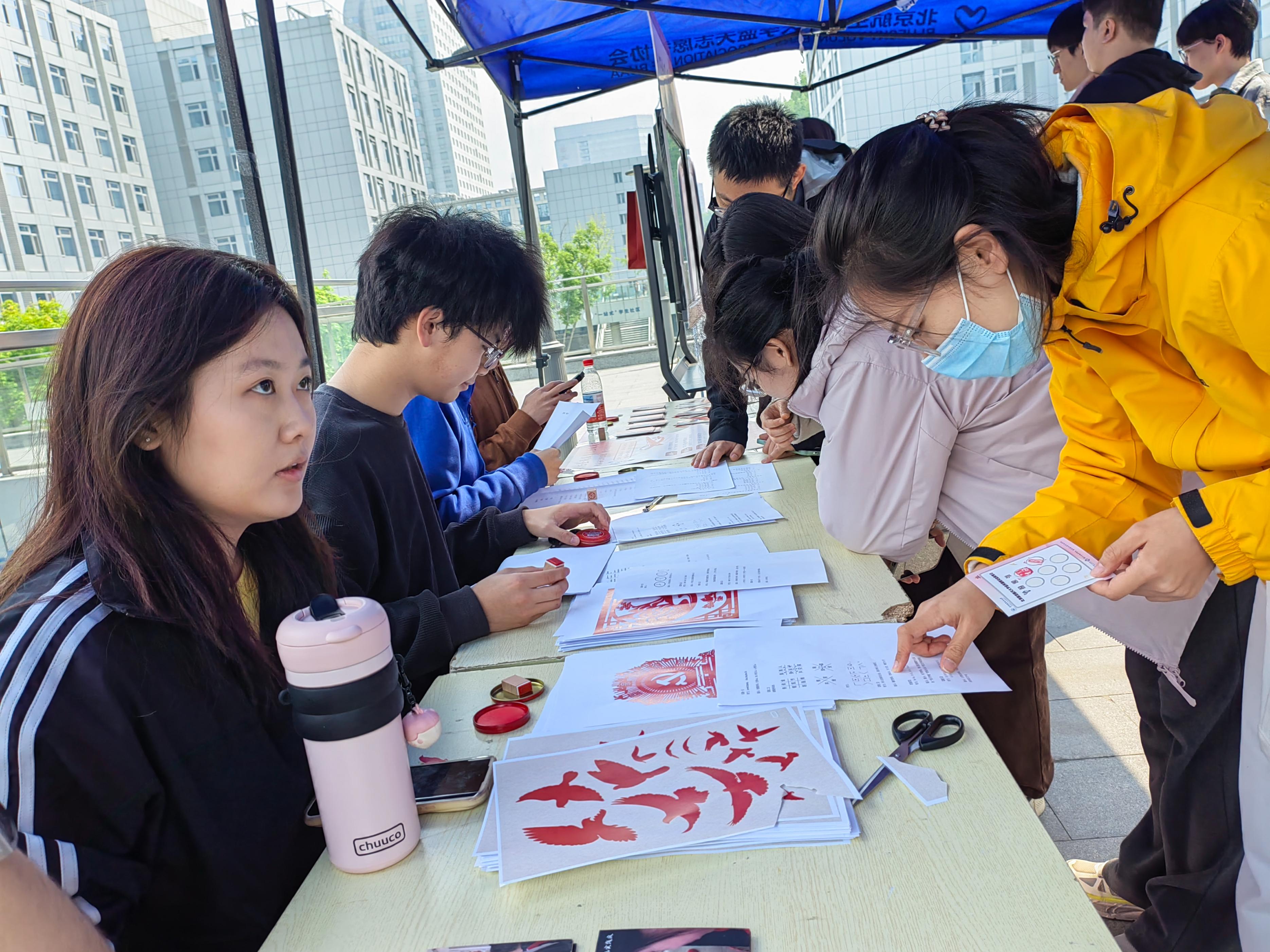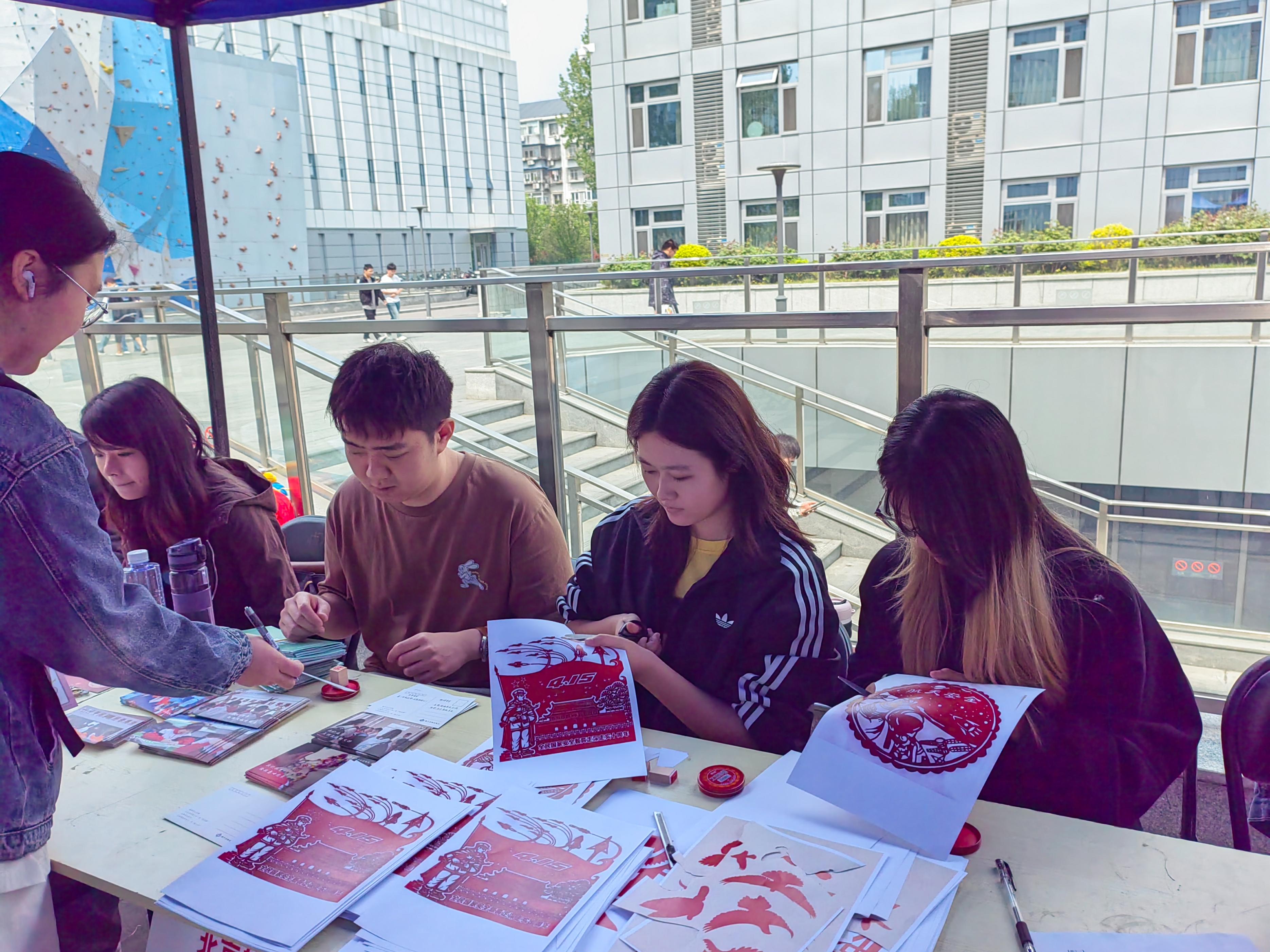 15日中午,记者在北航学院路校区活动现场看到,学校共设置了AI解密、知识问答、密文寻踪、剪纸凝思、寄语传情5个体验活动,前来体验的师生络绎不绝。