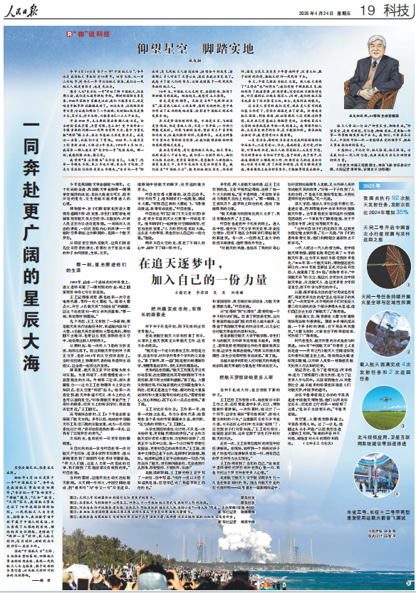 值此“中国航天日”之际,本版推出整版策划,回顾航天事业的辉煌成就,展现一代代航天人矢志报国、敢于创新的坚定信念,以及航天精神对社会的深刻影响。