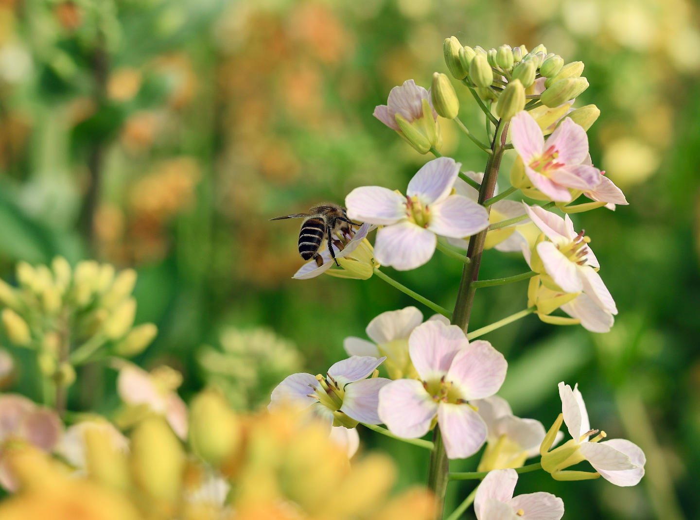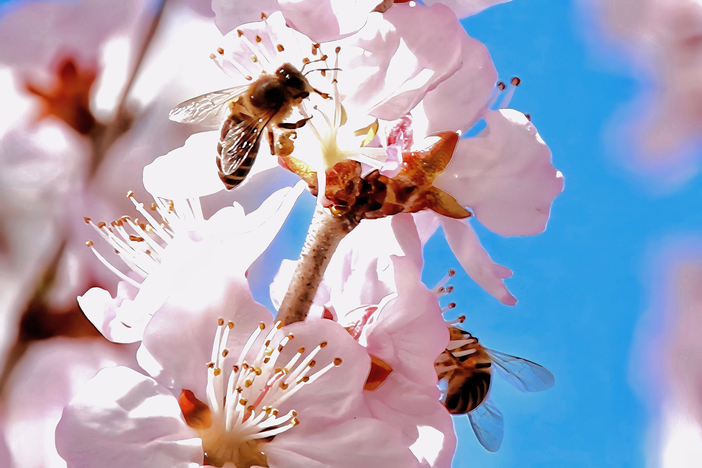 蜜蜂也忙碌着,采摘新春第一缕甜香
