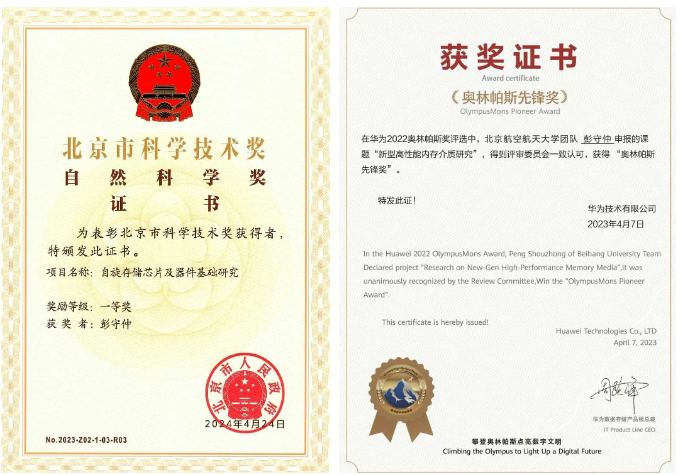 他带领团队默默耕耘,取得了一系列标志性成果。突破了压控自旋矩写入技术,为研制更低功耗、更高密度的磁存储器开辟了新路径。相关成果发表在微电子器件领域顶级会议IEDM上——这是该会议创办60多年来,北航发表的第一篇IEDM论文,在国际舞台上发出北航声音。他探索发现的反铁磁/铁磁双层结构中的电学调控交换偏置效应,为实现全新的数据存储及写入方法提供了原理基础,相关成果发表于微电子领域顶级期刊Nature Electronics,入选ESI高被引论文,并被Tech Xplore等国际科技媒体专题报道,获得广泛关注。