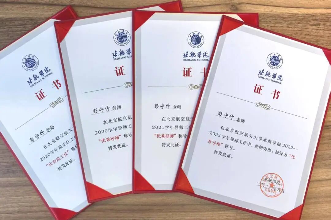 作为学生成长路上的引路人,彭守仲多年深耕本科生培养一线,身兼学业导师与班主任双重角色,连续4年被评为北航学院“优秀导师”,连续3年获评学院“优秀班主任”。