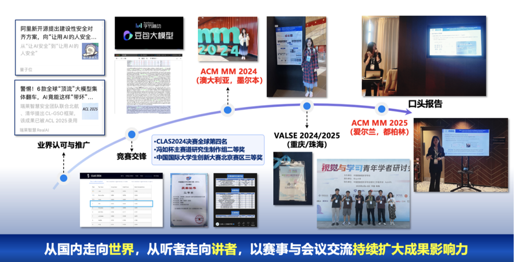 她用实打实的科研成果,回应着时代的命题,经过业界认可及竞赛认定后,她也从听者走向讲者,两次赴海外开展学术交流与口头报告,向国际学界传递北航在人工智能安全领域的前沿声音。