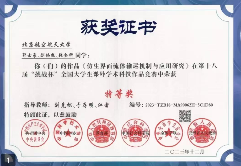 在竞赛场上,她同样大放异彩:第三十一届“冯如杯”学生创意大赛一等奖、第十二届首都“挑战杯”一等奖、第十八届全国“挑战杯”竞赛特等奖……一系列沉甸甸的奖项,见证了她在科研创新道路上的不懈追求。