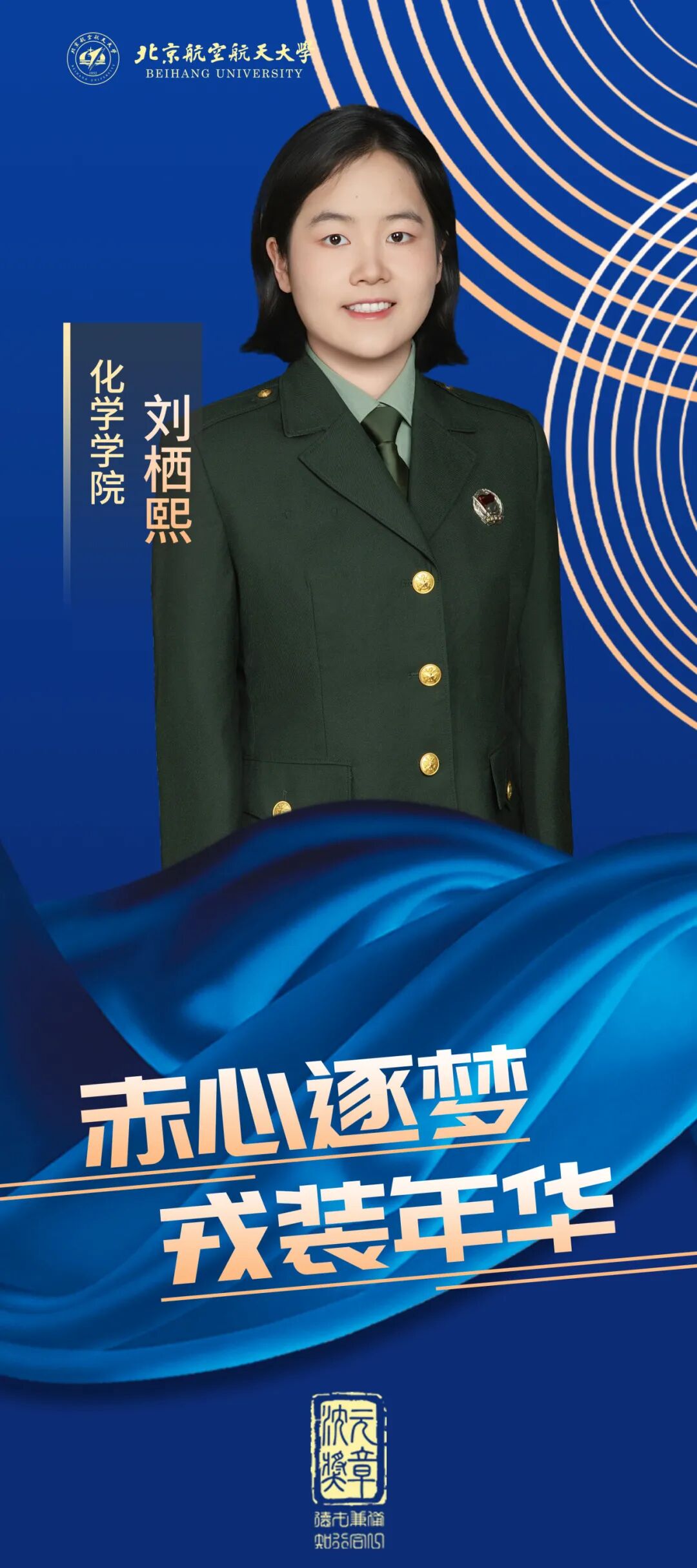 她在本科发表多篇SCI论文,在科研竞赛中屡创佳绩,而后毅然选择奔赴军旅,斩获“四有”优秀士兵荣誉称号,先进事迹被央视新闻等多家媒体报道,满载荣誉,退役归来;她从化学强基的实验室跨界到集成电路的科研前沿,获得北航最高荣誉“沈元奖章”,用青春诠释了“空天报国”与“保家卫国”的双向奔赴。她就是北航化学学院2020级强基计划本科生刘栖熙。