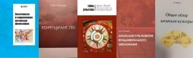 部分国家社科基金中华学术外译成果译著,从左到右依次为:《实证主义与中国近代哲学》《基础教育发展的中国之路》《孔学古微》《中国文化通论》《解读敦煌:敦煌彩塑》