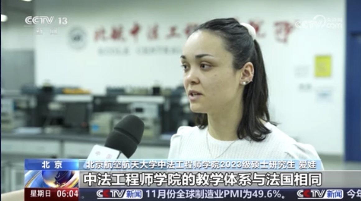 【解说】在北京航空航天大学已成立20年的中法工程师学院,去年新建碳中和联合实验室,今年迎来首批法国学生,这已经是爱娃第二次来到中国学习了。