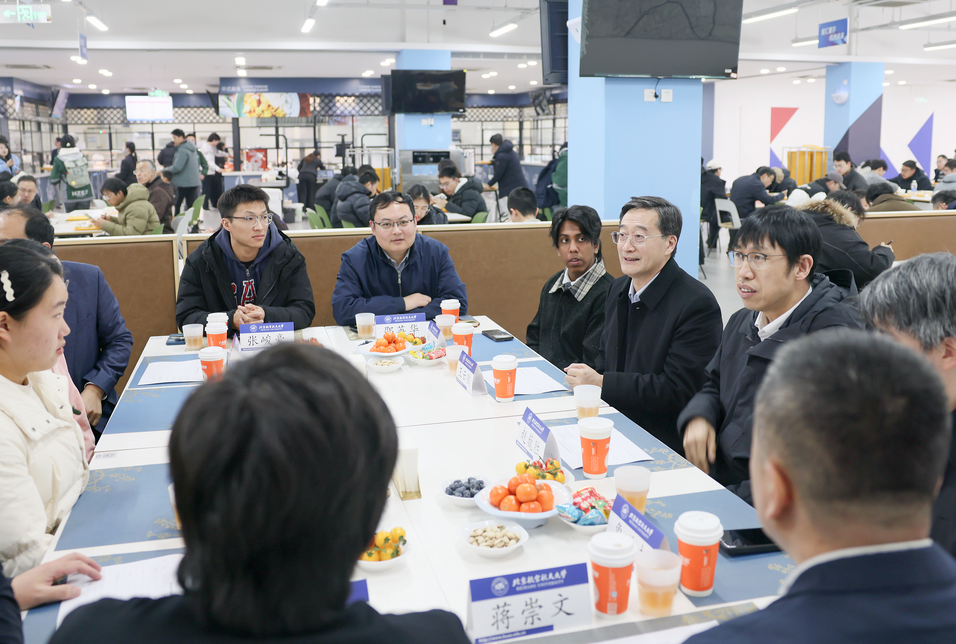 “你是哪里人呀?准备什么时候回家?学习中有没有遇到难题?”王云鹏与中外学生代表亲切交流。同学们敞开心扉、踊跃畅谈,对学校提供的前沿科研平台、完备校园设施和持续优化的校园服务表示由衷感谢,并围绕假期计划、学习挑战、科研探索、生活体验、职业规划等分享了各自的感受,同时就丰富党团活动、规划活动空间、提升服务质量等方面提出积极建议。