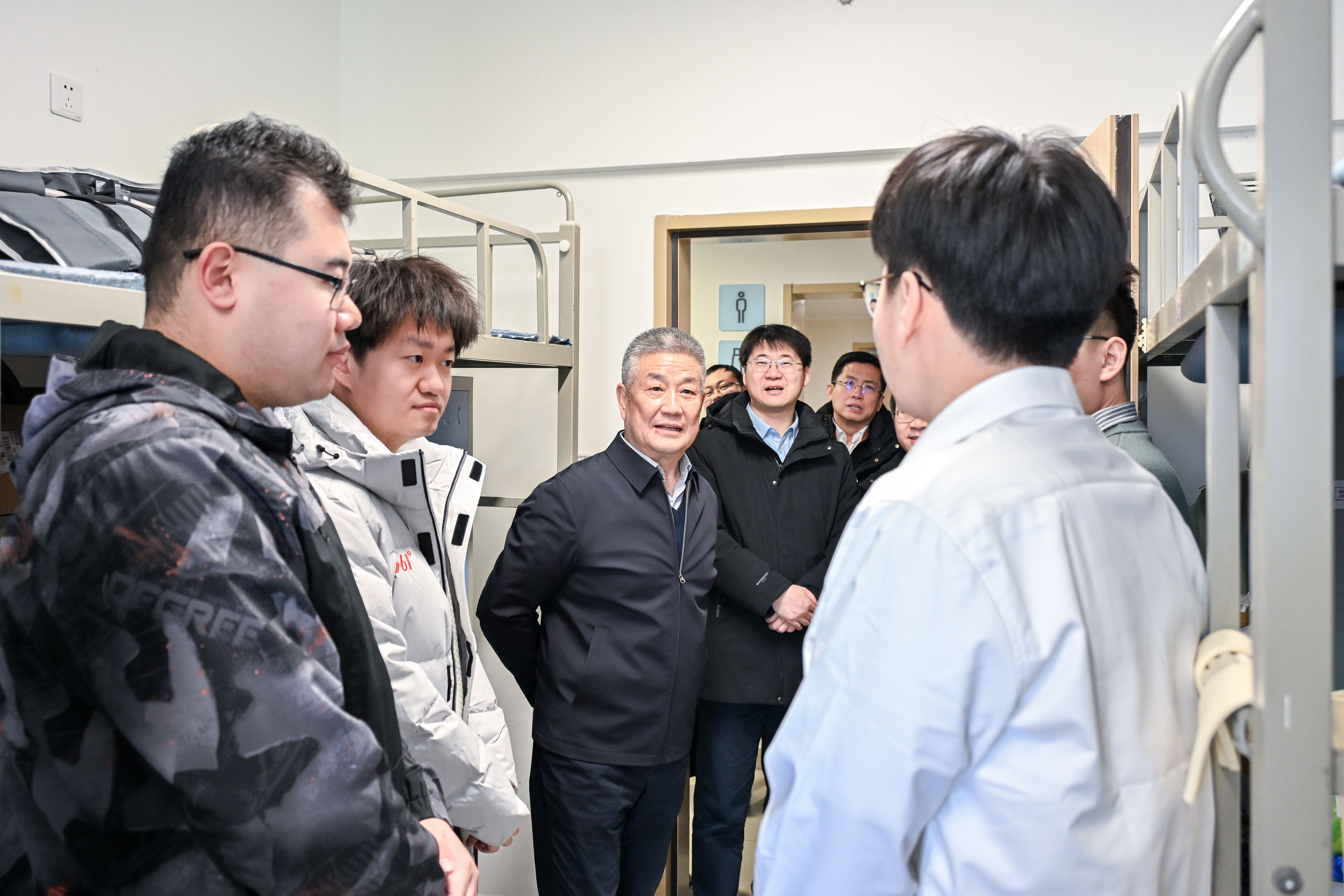 在学生公寓,赵长禄与留校学生和公寓宿管人员交流,关心他们的假期安排与学习生活情况。赵长禄表示,学校将尽力做好各项后勤保障工作,满足留校师生的学习与生活需求,确保大家在校期间能够安心学习、舒心生活。赵长禄叮嘱同学们要及时向家人报平安,让家人安心放心。希望大家充分利用好学校和学院的资源优势,合理规划学习与生活,注意劳逸结合,度过一个欢乐充实、平安喜庆的新春佳节。