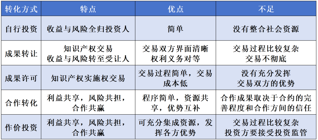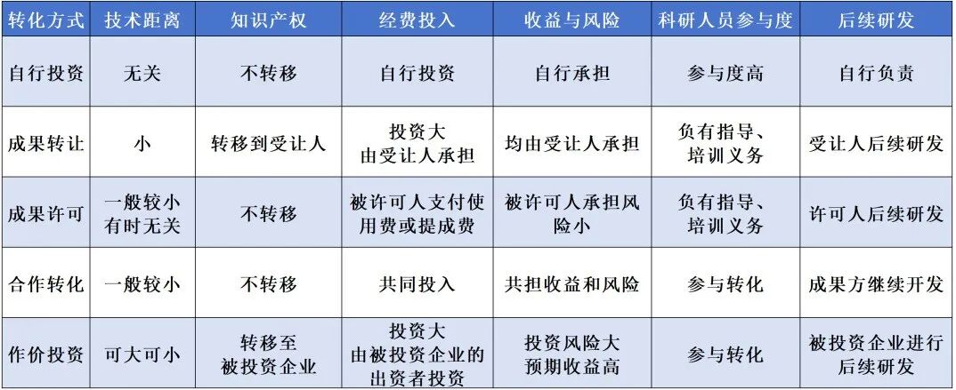 成果转化方式比较