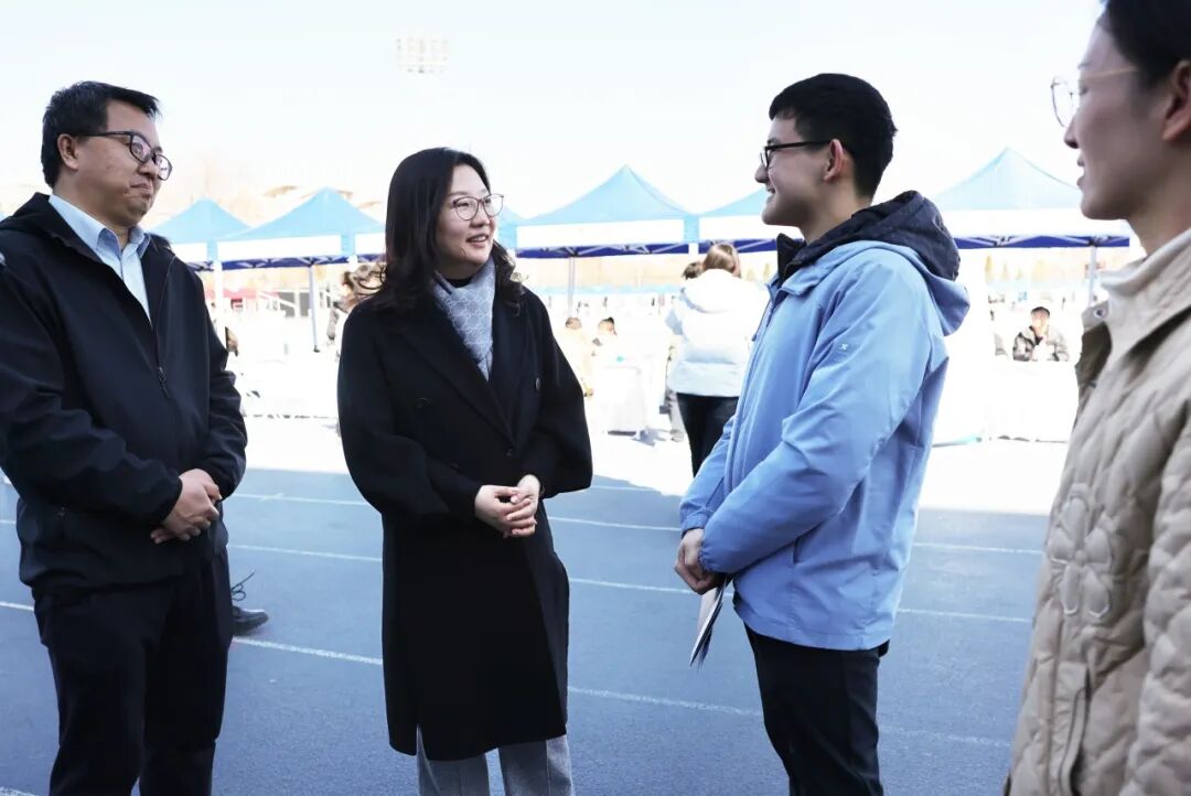 副校长邓怡来到招聘会现场,与重点单位、毕业生等交流,表示学校将以更高站位、更实举措、更优服务为毕业生高质量就业保驾护航。