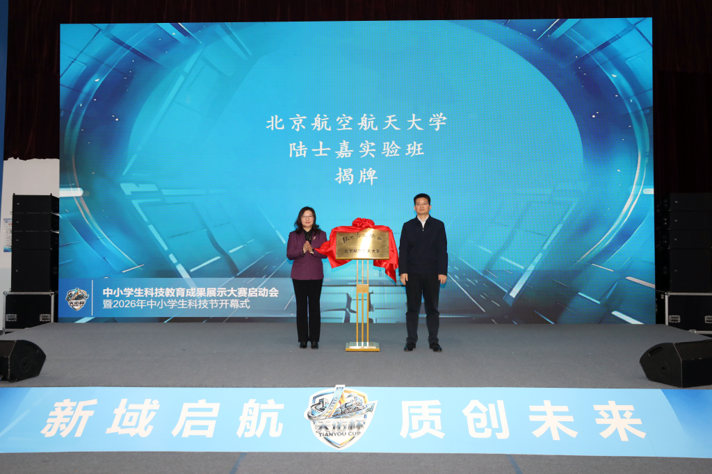 开幕式上,苏大林、邓怡共同为陆士嘉实验班揭牌。陆士嘉实验班由北航与昌平区教委携手打造,依托北航在航空航天领域资源优势,通过开设大学先修课程、双导师制培养、沉浸式科研实践等方式,探索拔尖创新人才早期发现与大中衔接贯通培养的新路径。
