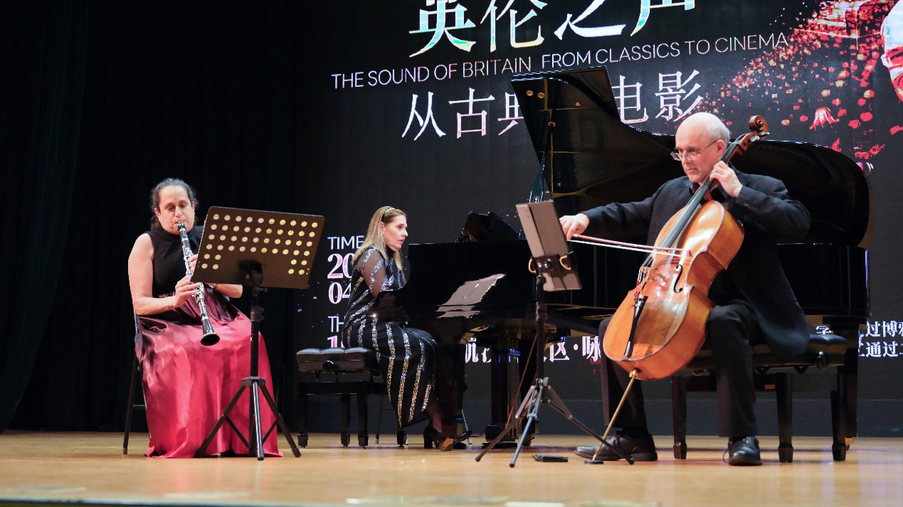 北航新闻网4月19日电(通讯员 高蕊)4月16日晚,北航美育中心特邀美育演出《英伦之声:从古典到电影》音乐会在沙河校区咏曼剧场举办。钢琴演奏家柯雷莉娅·伊茹森(CLELIA IRUZUN)、大提琴演奏家尼克·罗伯茨(NICK ROBERTS)和单簧管演奏家雪莱·莱维(SHELLEY LEVY)三位艺术家联袂献艺,为北航师生奉上一场跨越古典与光影、融合经典与时代的唯美音乐盛宴。