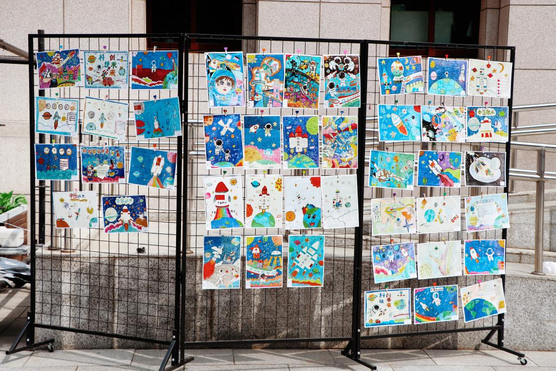 在“航天+”嘉年华外场,支教团小学生航天主题画展吸引众多师生驻足。北航研究生支教团跨越千里,将来自宁夏回族自治区泾源县新民乡中心小学的孩子们的画作带回校园。同时,这所小学也将“百米长卷”带进了他们自己的航天文化节,面向全校科普空天知识。北航人把航天梦想的种子播撒在天涯海角,孩子们用稚嫩的画笔描绘出心中的星辰大海。
