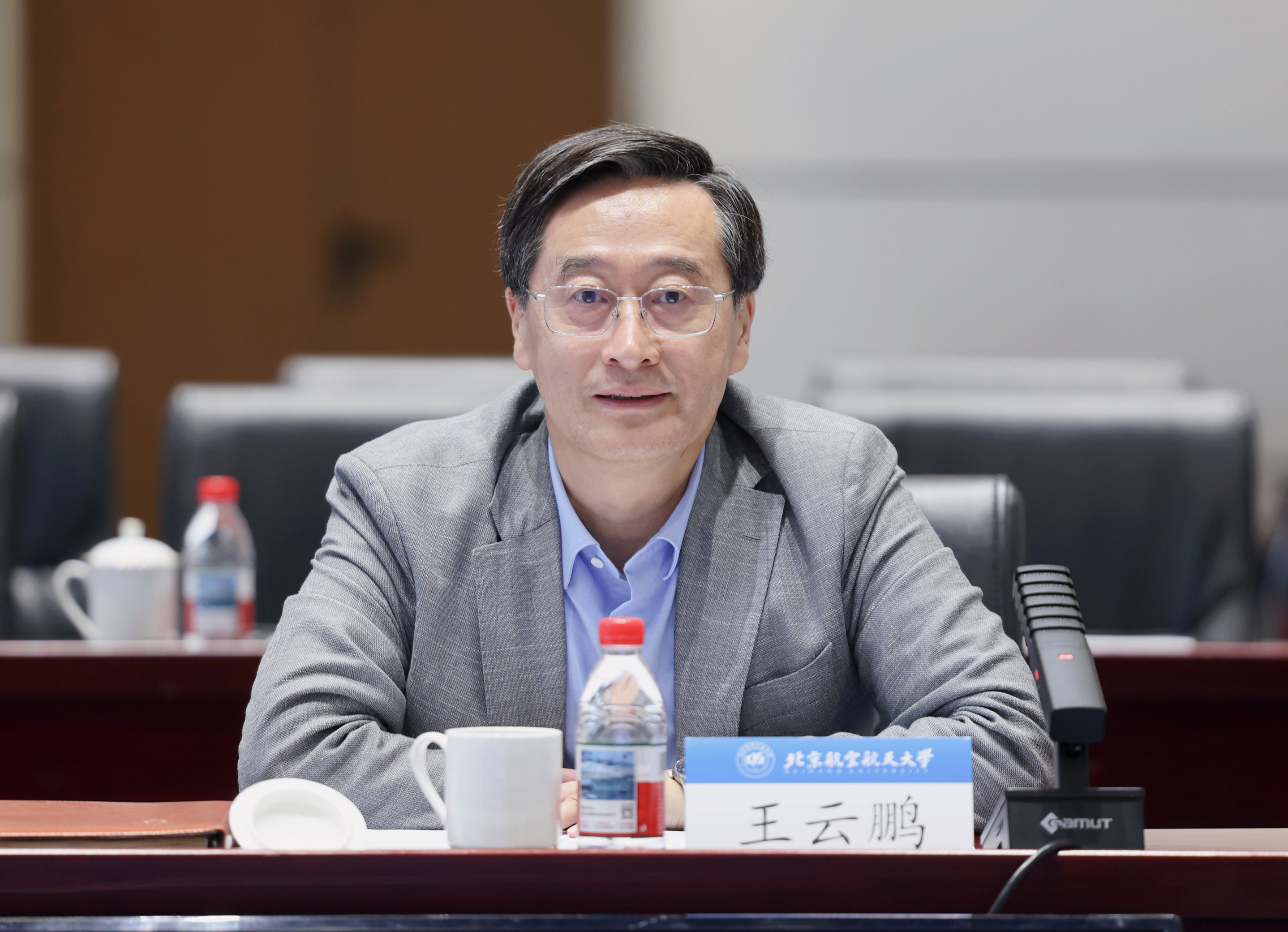 王云鹏对张玉金一行的到来表示欢迎,并介绍了学校在人才培养、科学研究、师资队伍等方面的工作情况。他表示,中国航发与北航因国家战略而携手、因自主创新而同行,始终坚守着航空报国的共同使命,一直以来双方合作取得了丰硕成果。北航将继续发挥教育科技人才综合优势,全面深化与中国航发的战略关系,在全面推进科研合作、推动联合技术攻关、支撑国家重大项目、开展人才联合培养等方面持续深化合作。希望双方进一步夯实合作长效机制,持续推动产学研用深度融合发展,为航空强国、科技强国建设作出新的更大贡献。