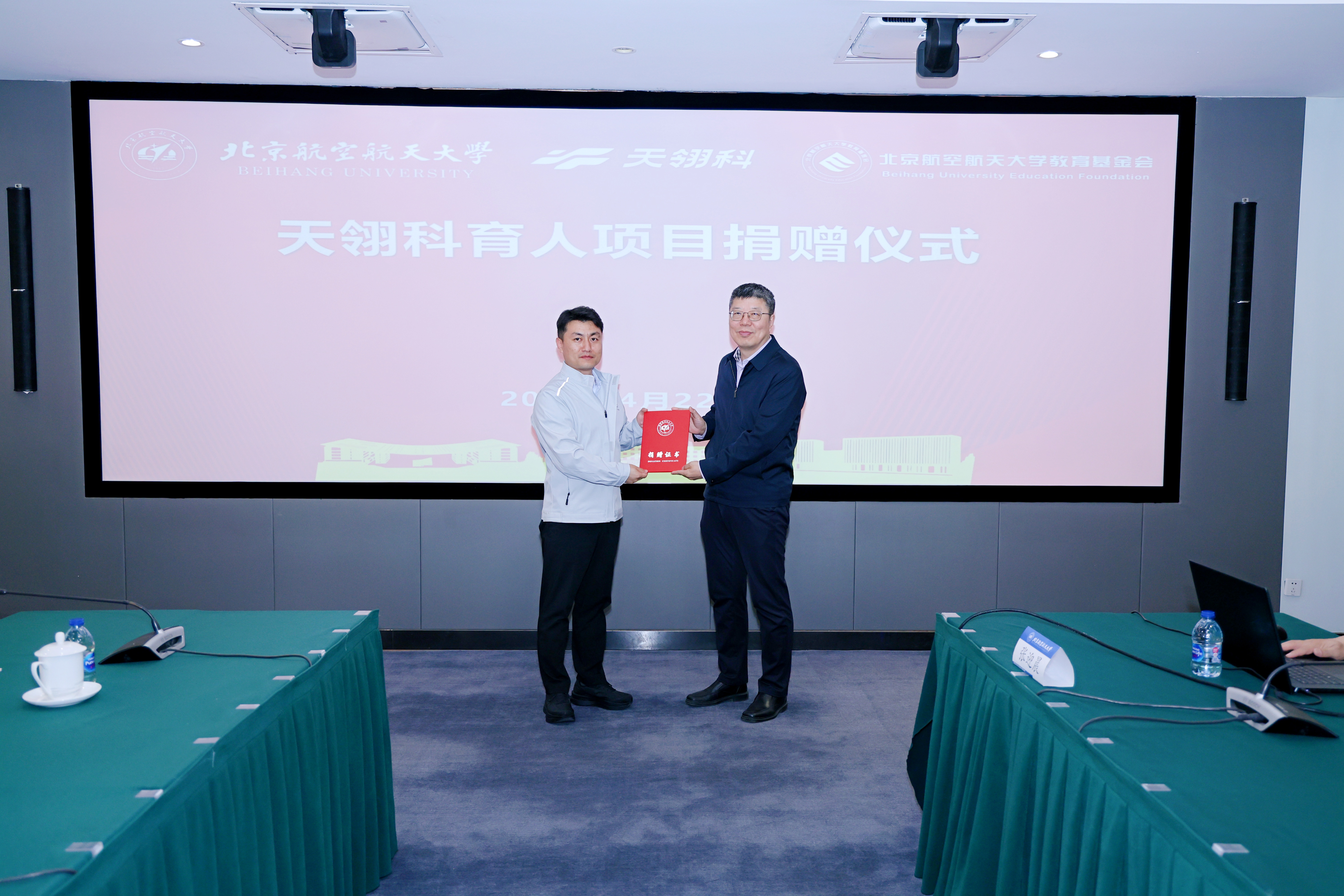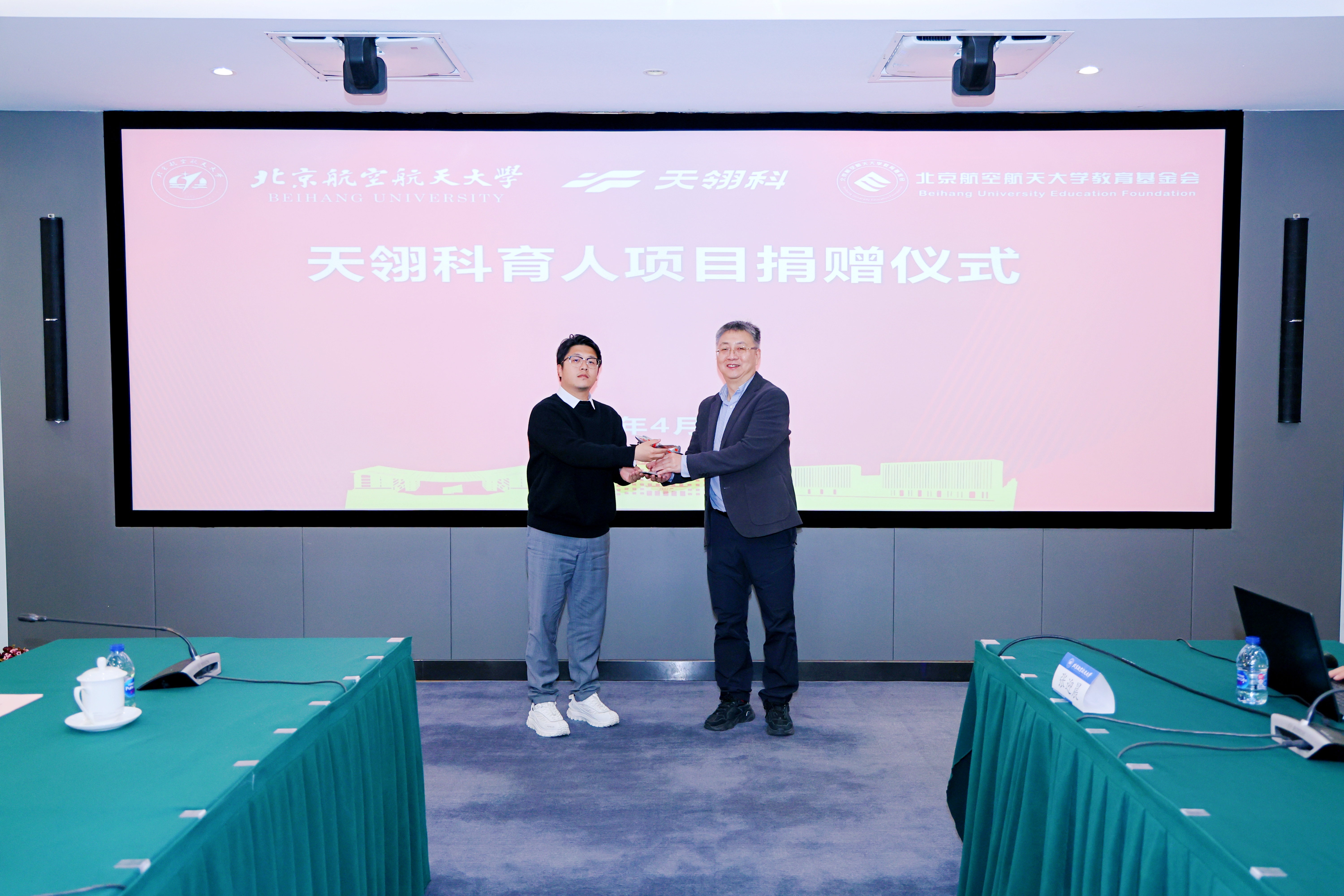 交通科学与工程学院党委书记、飞行汽车项目制试验班班主任杨世春介绍了试验班基本情况。试验班创新推行“项目制人才培养”模式,学生从大二开始参与共研飞行汽车,用三年时间完成从概念设计到实机试飞的全过程。杨世春表示,天翎科的捐赠将为学生们架起从课堂到产业的坚实桥梁,助力培养更多低空经济领域的复合型领军人才。