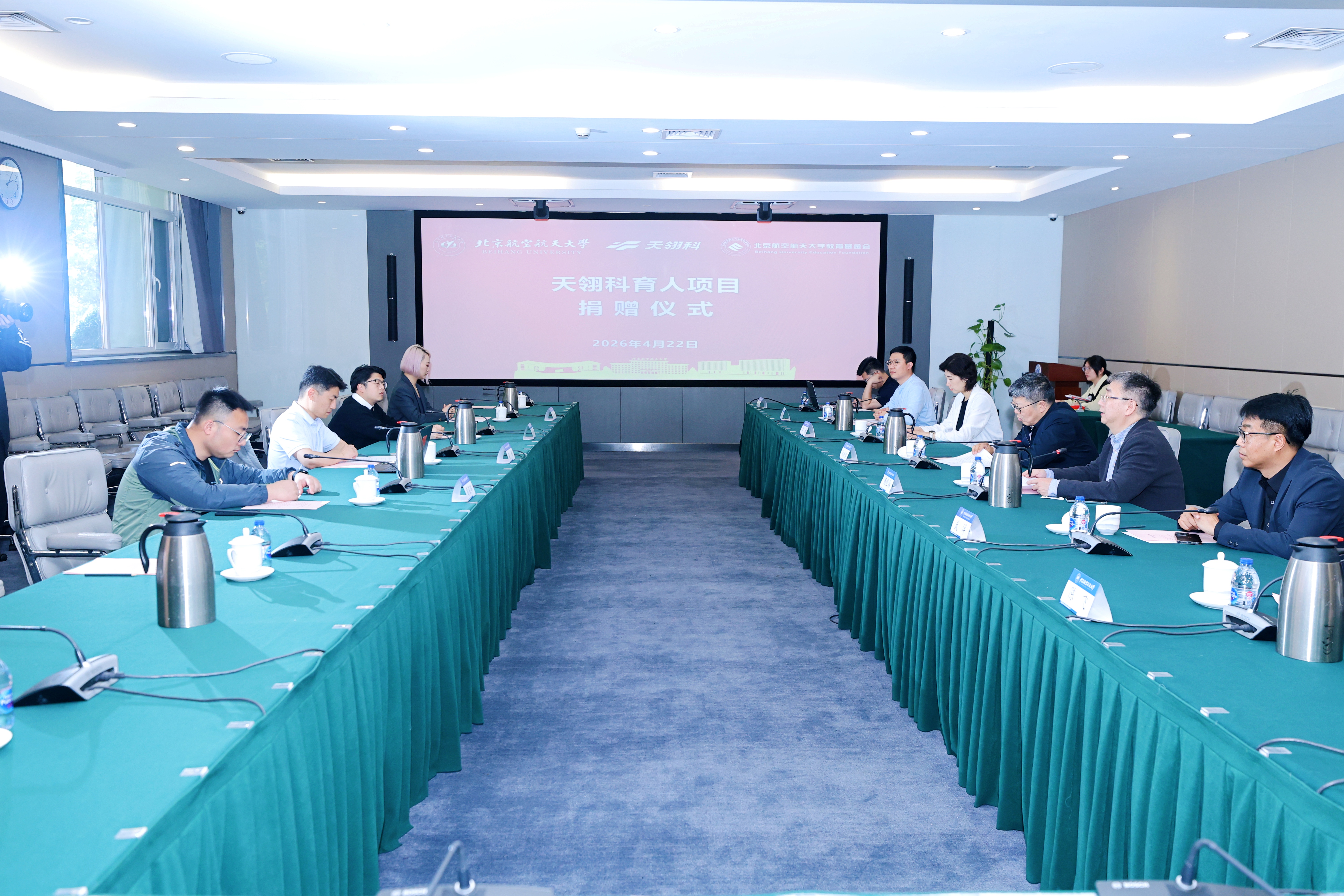 北航新闻网4月29日电(通讯员 黄万超)4月22日下午,“天翎科育人项目”捐赠签约仪式在学院路校区如心会议中心举行。校党委副书记、教育基金会理事长刘树春,交通科学与工程学院2004级本科、2008级硕士校友、天翎科航空科技(上海)有限公司创始人兼CEO蒋彬携联合创始人团队出席签约仪式。
