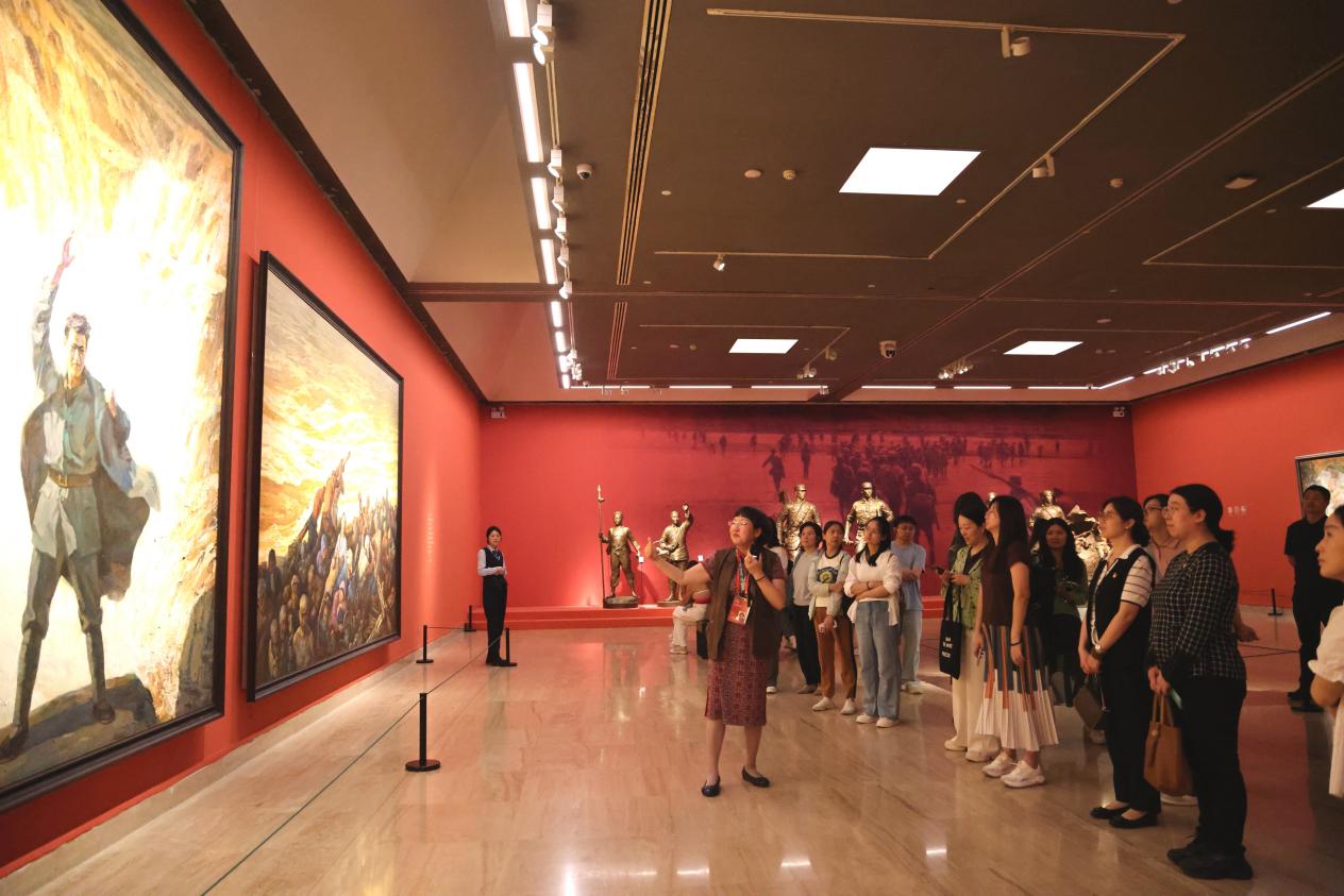 北航新闻网9月29日电(通讯员 朱蕊寒/文 王旭/摄影)为深入学习贯彻习近平总书记关于教育强国的重要指示精神,赓续红色血脉、涵养育人初心、提升美育素养,美育中心与教师发展中心联合组织教职工赴中国美术馆,开展纪念中国人民抗日战争暨世界反法西斯战争胜利80周年主题现场教学活动。活动通过艺术鉴赏与历史回望相结合的方式,为教职工打造沉浸式思政教育体验。
