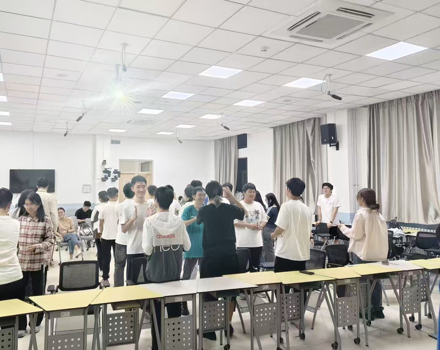 活动伊始,主持人向同学们介绍了中秋节的深厚文化内涵与活动流程。同学们自由组队,迅速分成五个小组,组内成员在轻松的氛围下很快打破了陌生感,融入温馨的集体氛围中。“明月寄相思”环节考验团队的默契与肢体表达能力。每组五人依次排开,需通过肢体动作将指定的词语或诗句信息,从首位同学精准传递至最后一位。即便部分题面难以用简单动作诠释,仍有小组凭借出色的理解与配合,快速完成传递并准确作答,充分展现出团队的凝聚力与默契度。