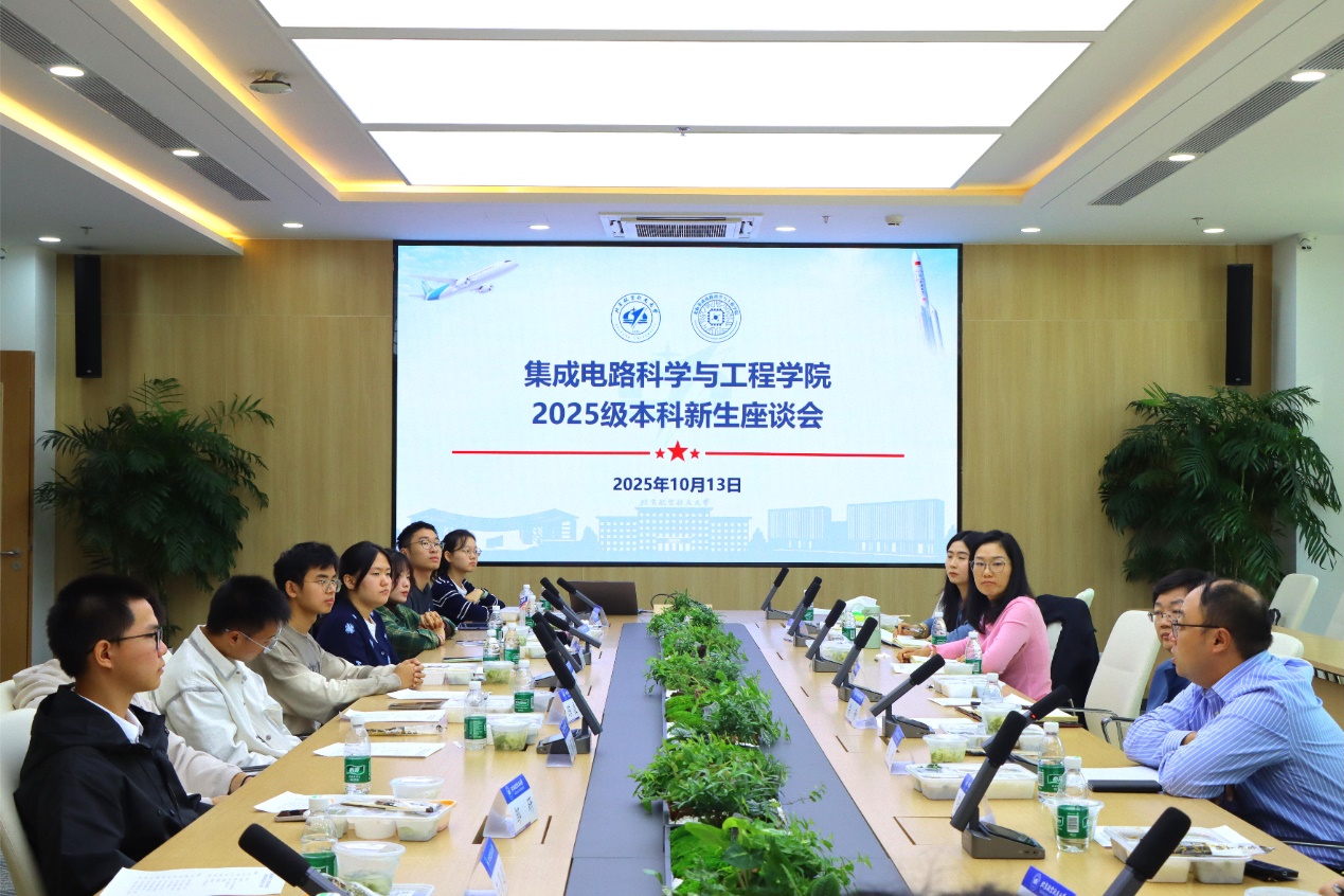 北航新闻网10月15日电(通讯员 胡晏铭)为深度调研2025级本科新生入学以来的学习生活实况,畅通师生沟通渠道,精准倾听新生心声,切实解决学子实际需求,10月13日中午,集成电路科学与工程学院举办2025级本科新生座谈会。