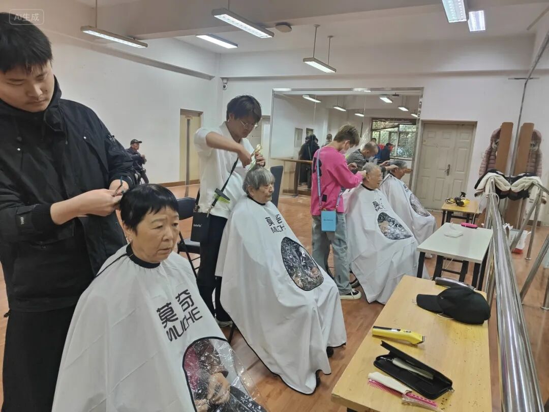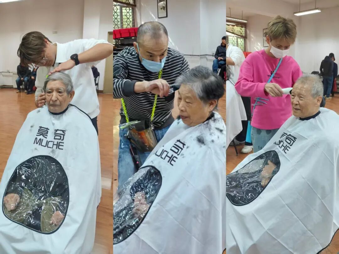 活动当日,“莫奇”理发团队派出的四位理发师技艺娴熟、耐心细致,他们手中的剪刀上下翻飞,为一位位老同志修剪出清爽利落的新发型。现场没有喧闹,只有推剪的嗡嗡声、轻柔的交谈声和偶尔传来的欢声笑语。老同志们在工作人员的引导下排好顺序,彼此谦让,秩序井然。他们一边等候,一边闲话家常,时而对正在理发的同伴端详几下,送上“这个发型真精神,显年轻!”的真诚夸赞;这一刻,理发已不仅仅是一项服务,更成为了连接情感、传递关怀的温馨纽带,现场其乐融融,十分和谐。