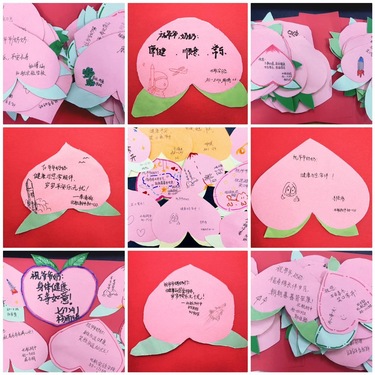 在“敬老月”,北航实验学校中学部初中一年级十个班的同学们,将对爷爷奶奶的敬意融入劳动课,每位同学都为爷爷奶奶制作了手工“寿桃”,并写下对爷爷奶奶们的美好祝福,既是劳动教育的成果,更是美育与德育的生动体现。