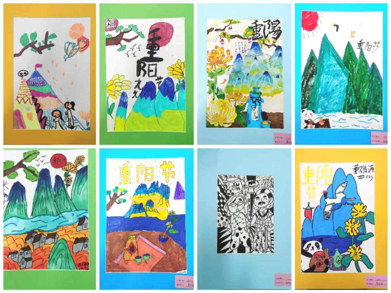 同时,附小的同学们围绕重阳节主题,以画笔表达心意,祝福爷爷奶奶们重阳安康、福寿绵长。