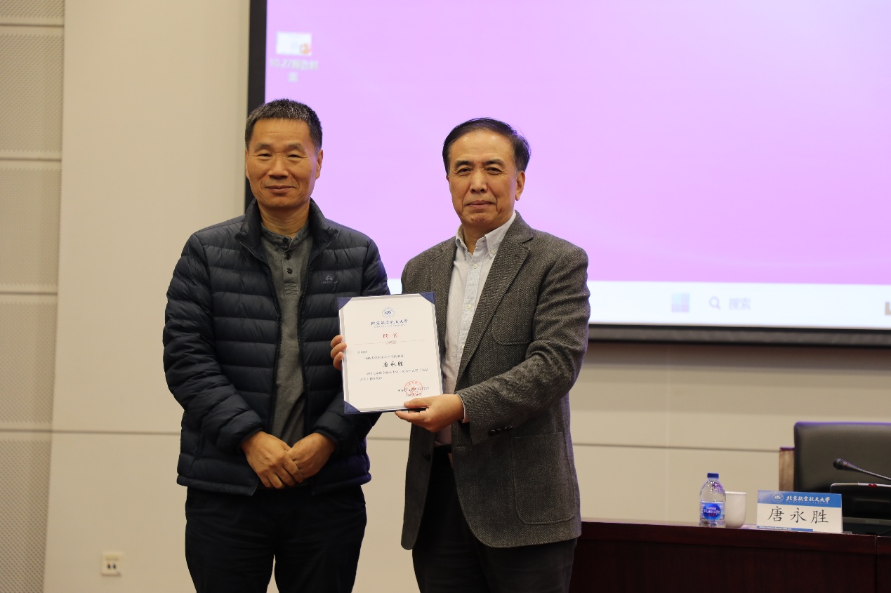 唐永胜教授以国际关系为引子,分析了“百年未有之大变局”的本质特征,总结了各个国家实施国家安全战略中的经验与教训,从中国与世界的关系的现状中辨析了许多重要问题。报告结束后,会场中的掌声经久不息。北航安全工程专业责任教授赵廷弟为唐永胜教授颁赠《国家安全》课程指导教师聘书。