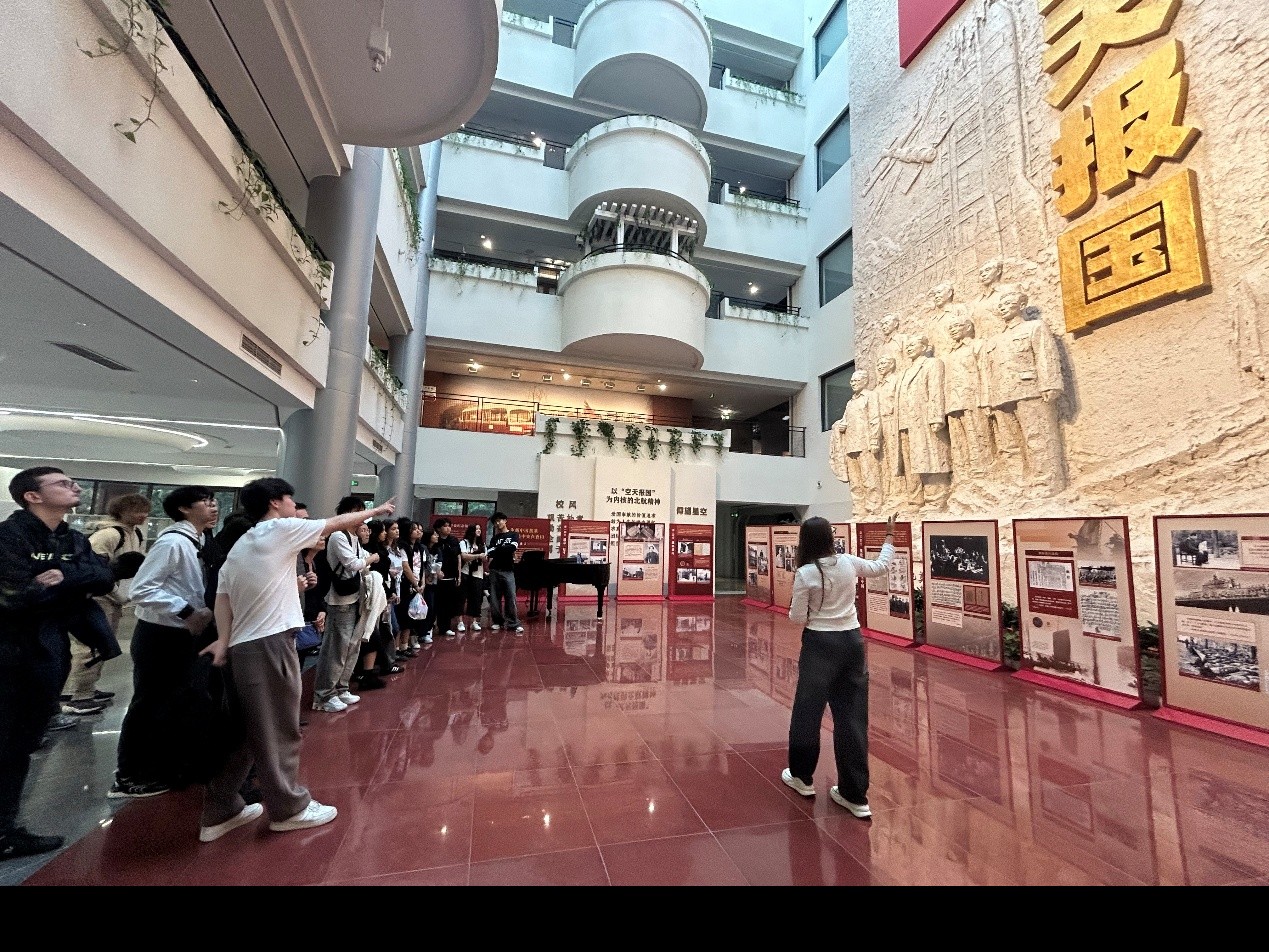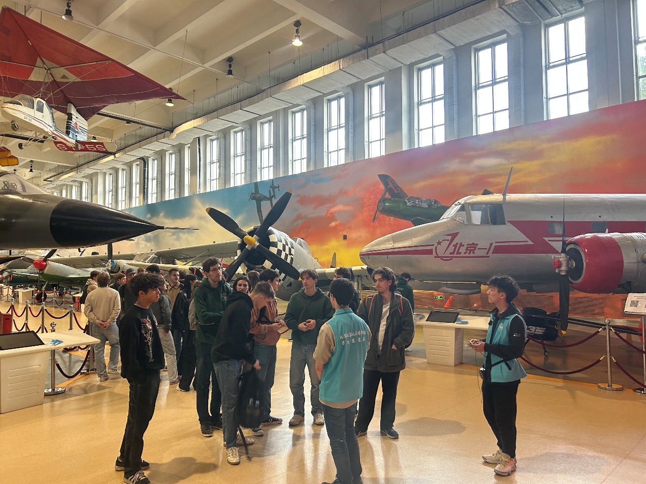 下午,师生团队先后走进航空航天博物馆与校史馆。在航空航天博物馆,法国留学生讲解员以“长空逐梦”“银鹰巡空”等展区为核心,结合实物展品讲解人类航空航天发展历程,让来访师生直观感受中国航空航天事业的蓬勃活力;在校史馆,讲解员通过历史图片、实物展品,生动讲述北航建校初心与辉煌成就,师生们不时驻足提问,深入了解北航与中国航空工业的紧密联系。