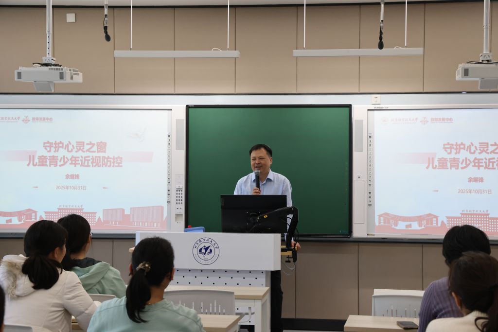 北航新闻网11月7日电(通讯员 朱蕊寒)为助力教职工身心健康与家庭和谐,提升教职工对子女视力健康的科学认知与防护能力,近期,生物与医学工程学院与教师发展中心联合举办“守护心灵之窗——儿童青少年近视防控”专题讲座。本次讲座特邀国家儿童医学中心、首都医科大学附属北京儿童医院眼科主任医师余继锋,通过专业的讲解分享,为教职工们带来一场内容详实、贴近需求的视力健康科普。讲座由教师发展中心主任李红捷主持。