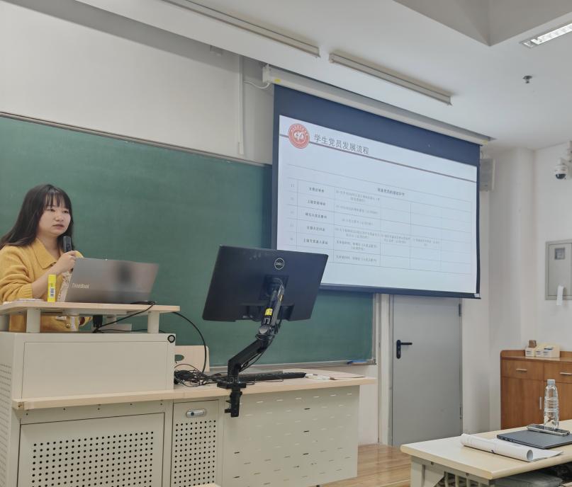辅导员史荻薇从学生党员发展流程、学生党支部建设等方面对党员培养、工作记录等进行了全面的梳理与讲解,并强调了学生党支部工作的重点要求及注意事项。