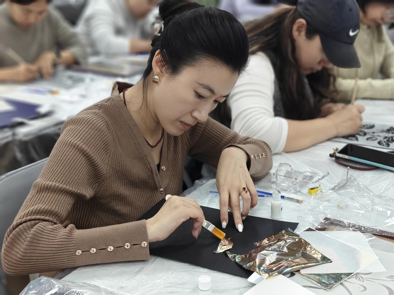 北航新闻网11月17日电(通讯员 常婷) 继螺钿非遗体验活动广受好评后,为持续推动中华优秀传统文化传承,丰富教职工精神文化生活,11月13日午间,由北航校工会主办,新媒体艺术与设计学院工会承办的“指尖生花・箔韵天成”烧箔画非遗手工活动,在学院路校区教职工之家温馨开展。30名来自校内多个机关部处与学院的工会会员齐聚一堂,在巧手创作中感受国家级非遗工艺的独特魅力。