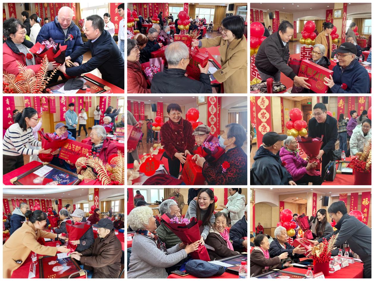 在温馨的氛围中,白金婚、钻石婚、金婚夫妇退休前所在单位代表和在职教职工夫妇代表为老同志们发放慰问品和鲜花,表达对前辈们的崇高敬意和美好祝福。