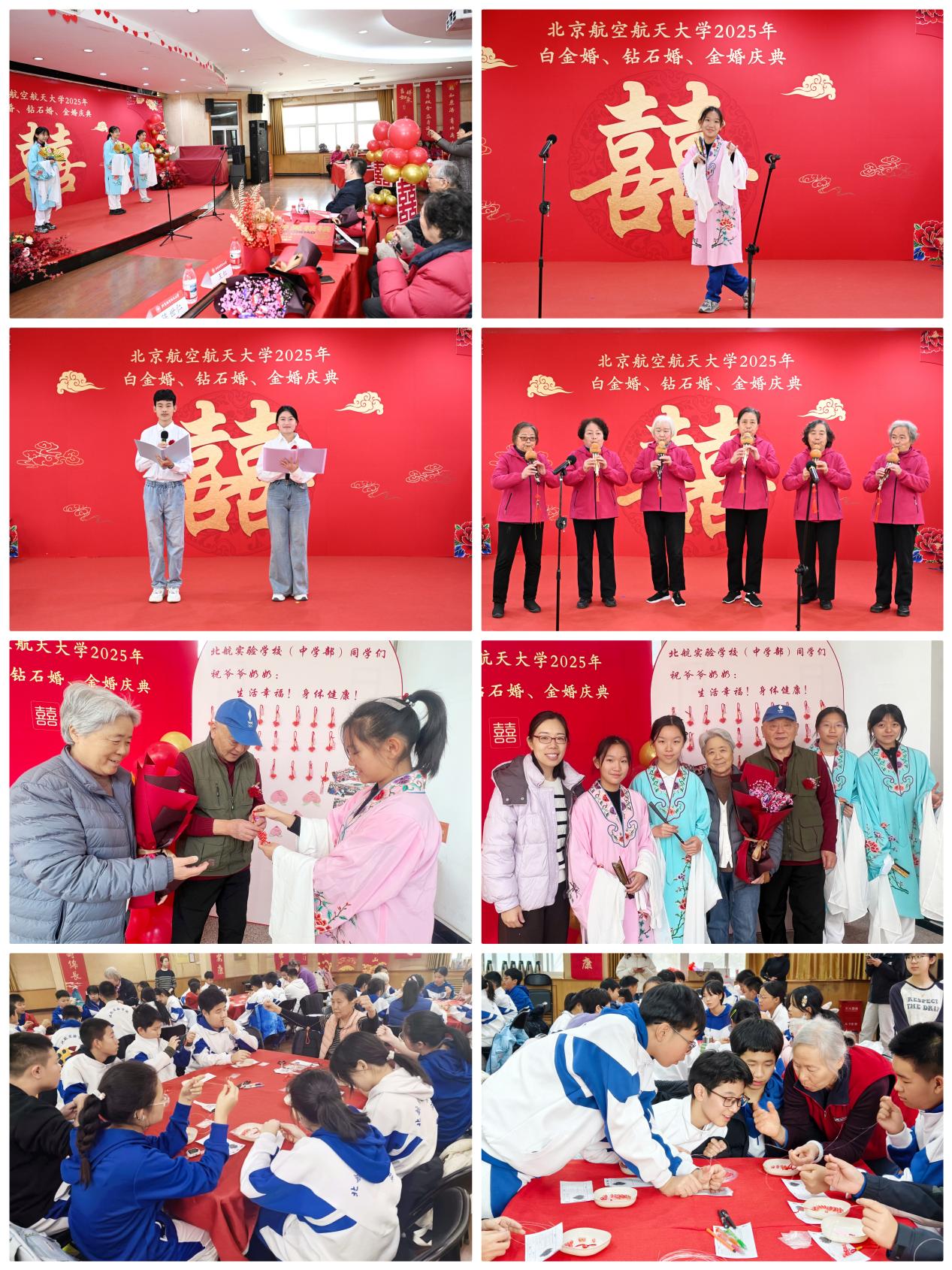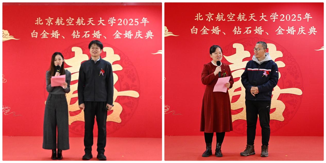 北航新闻网11月26日电(通讯员 肖昱)11月25日上午,2025年离退休教职工白金婚、钻石婚、金婚庆典在学院路校区思源楼举行。离退休工作处班子成员,金钻婚夫妇退休前所在单位代表,在职教职工夫妇代表与2025年白金婚、钻石婚、金婚夫妇欢聚一堂,共同参加活动。