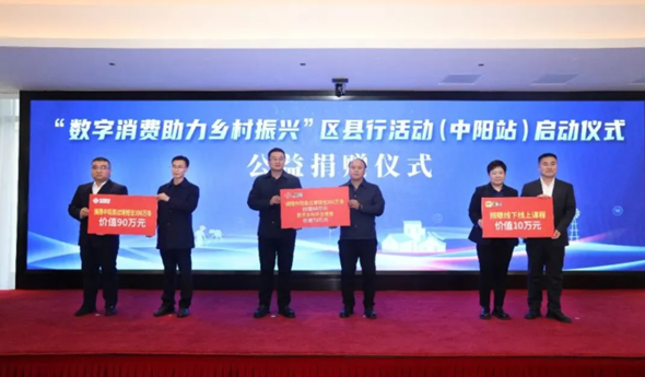 启动仪式上,与会领导共同推杆,宣布活动正式启动。中阳县相关领导就本地特色产业作了专题推介。中阳县人民政府与中国移动、中国联通、携程、元气空间等企业围绕数字乡村建设、文旅数字化、农产品电商等领域签署了系列合作协议。中国移动、中国联通、美团等企业还联合开展了公益捐赠,将在数字设施、培训资源、消费助农等方面为中阳县提供支持。