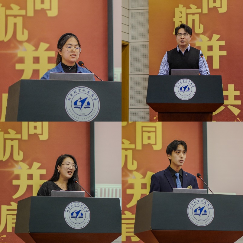 在回顾外院学子2025年度系列佳绩的同时,学院也欣喜地迎来了2023级硕士毕业生圆满完成学业、即将奔赴前程的重要时刻。毕业典礼上,毕业生代表依次登台,导师们为学子一一拨正流苏,寄予殷切祝福。毕业生则向恩师深深鞠躬,并献上谢师鲜花,将浓浓师生情谊定格在了这个难忘的时刻。2021级博士毕业生代表华梦柔作为毕业生代表发言。华梦柔表示,在北航难忘的求学时光离不开学院、导师、辅导员及家人所给予的陪伴和支持,作为北航学子,未来也将担当起与时代同频共振的光荣使命。