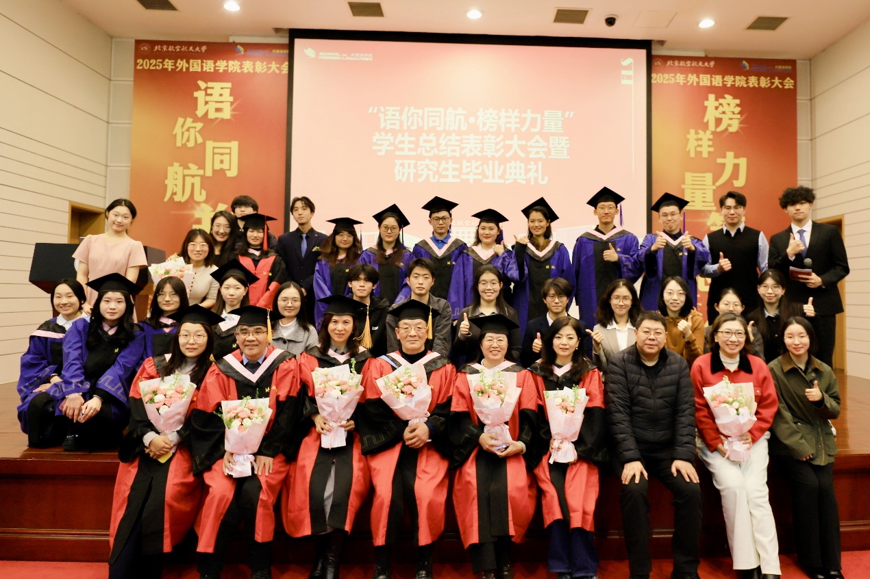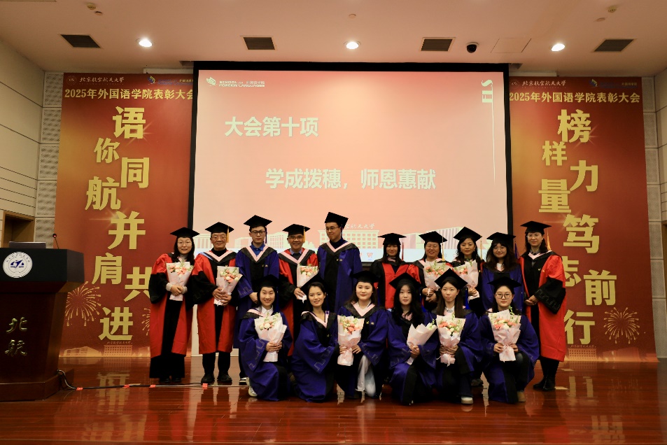 北航新闻网12月30日电(通讯员 范卓怡)12月26日晚,“语你同航·榜样力量”外国语学院2025年学生总结表彰大会暨研究生毕业典礼在新主楼第二报告厅举行。外国语学院师生欢聚一堂,共同回顾2025年的累累硕果,携手展望2026年的希冀篇章。