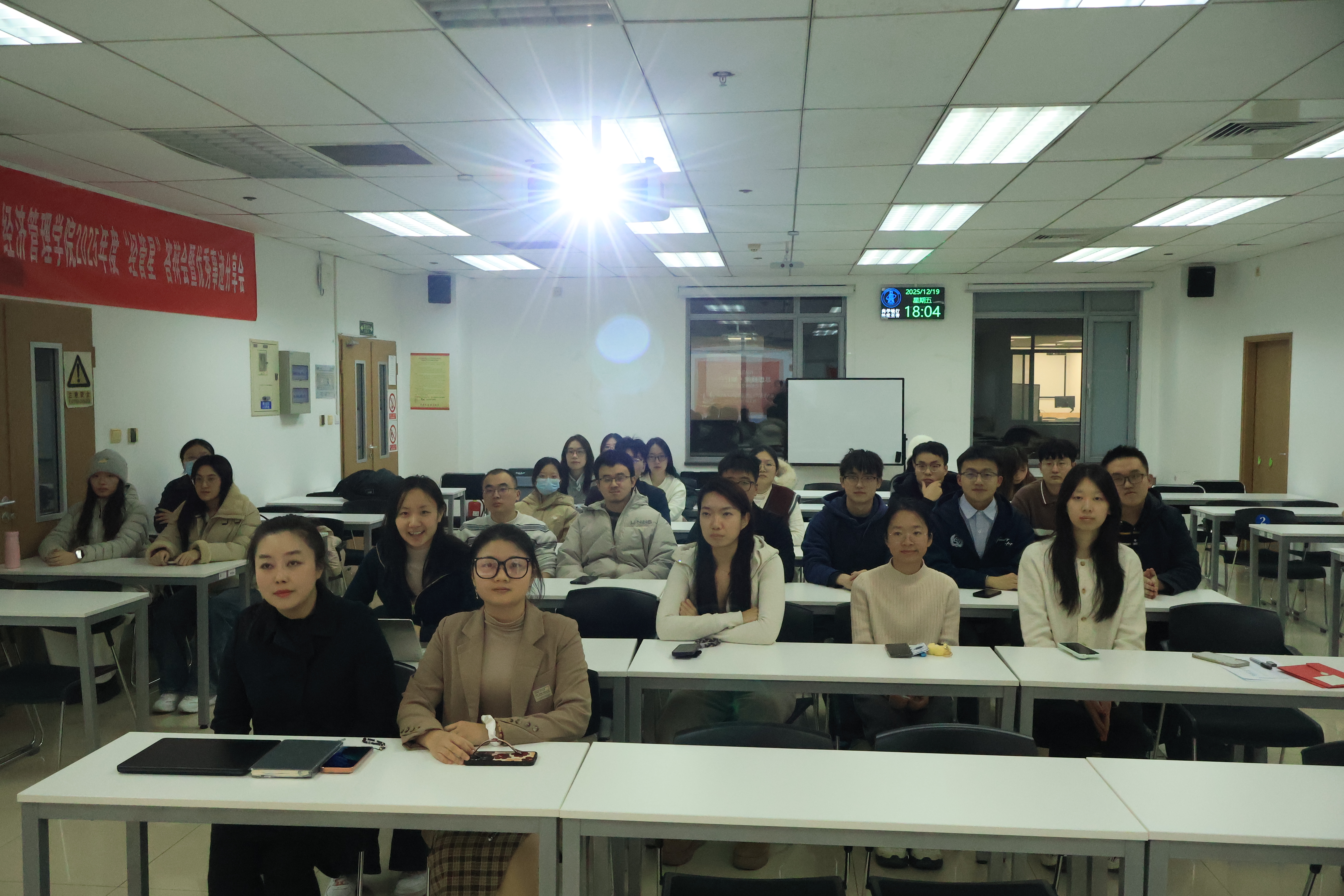 观影结束后,两支部组织开展专题知识竞赛。竞赛紧扣抗美援朝战争的重要历史事件和关键战役,通过多层次问题设置,引导党员系统梳理历史脉络、巩固学习成果。党员们积极参与、踊跃作答,在紧张有序的互动中形成了良好的学习氛围。工商管理专业学生纵向党支部书记李巧同志表示,通过“以赛促学”的方式,有效促进了跨支部交流,也帮助党员在互动中加深了对历史背景和精神内涵的理解。