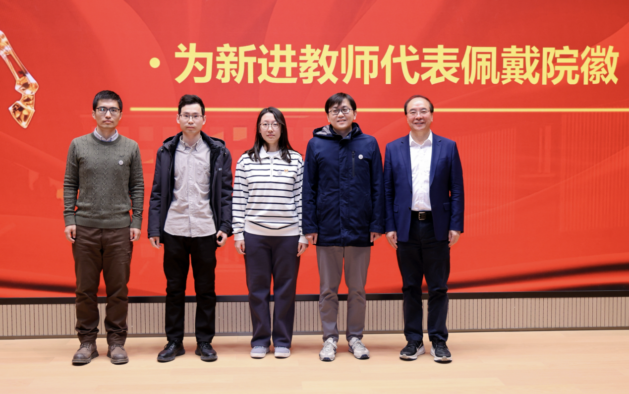 在欢迎新进教师之际,姚仰平为教师代表逐一佩戴院徽。一枚枚院徽熠熠闪光,承载着学院的荣光与期盼。这不仅是对他们加入学院的诚挚欢迎,更寄托着对年轻教师的殷切期许:希望大家既要深耕学术、精进本领,也要涵养德行、锤炼师风,牢记立德树人的根本使命,早日成长为学院发展的重要力量。