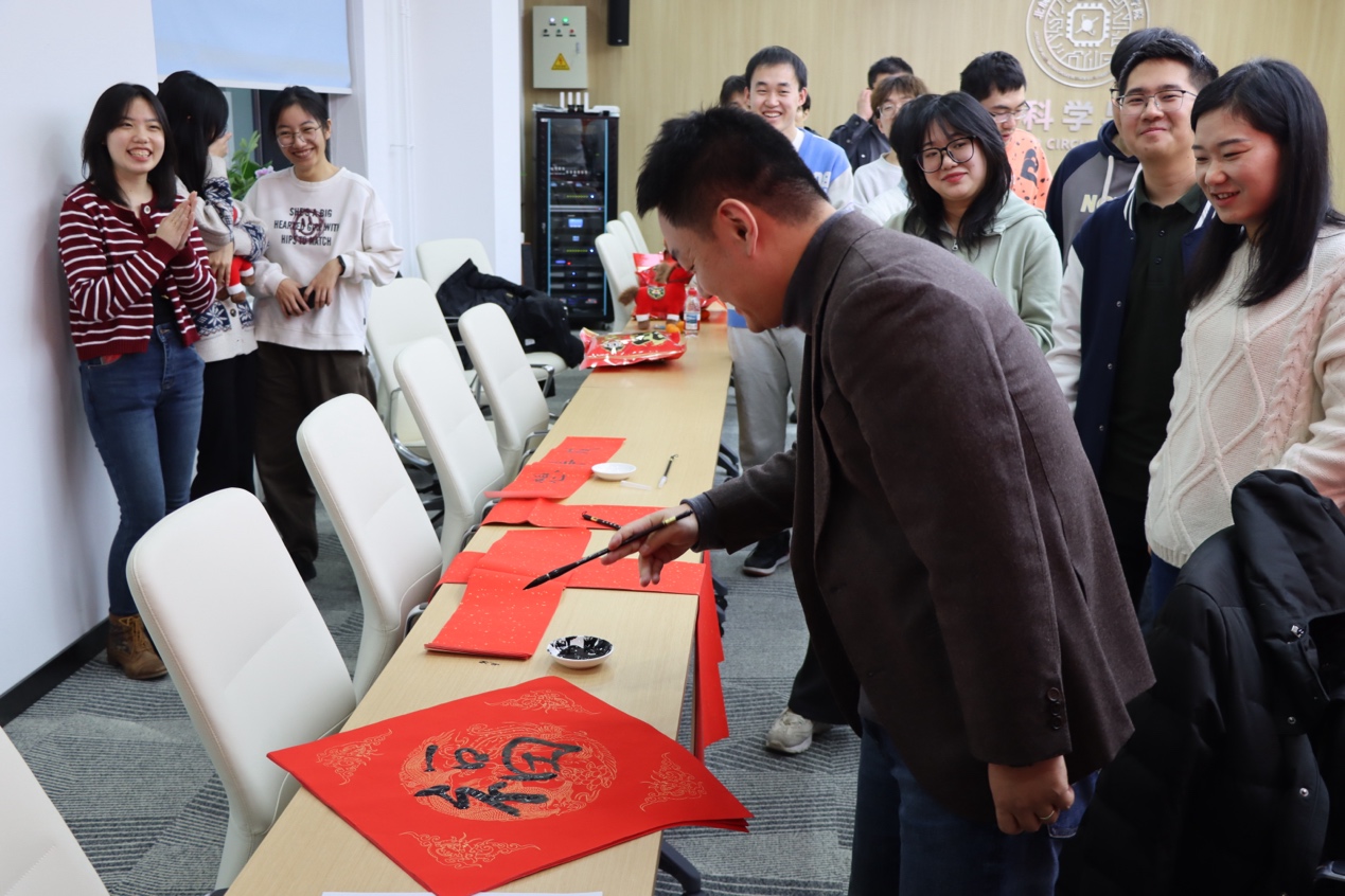 伴随着欢快的乐曲声,到场师生一起写“福”字和春联,一起表达对新年的美好祝愿。老师们挥笔写下“福”字、“心想事成”等寄语,同学们也纷纷提笔,书写新年期许,在笔墨书香中喜迎新春。