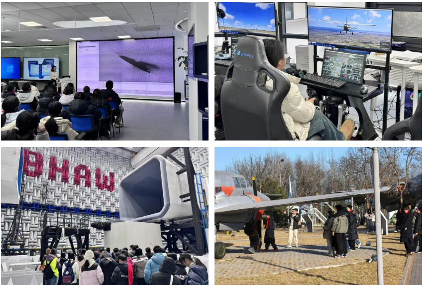 在北航沙河校区,同学们走进科研一线,近距离感受航空航天学科的魅力。在陆士嘉实验室,同学们直观了解到风洞作为飞机气动设计的“试金石”,在飞行器研发过程中的核心作用。在协同创新中心,师生们亲手体验模拟飞行的乐趣,真切体会到北航科研工作者“精益求精、久久为功”的科研精神。