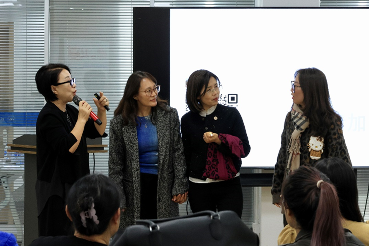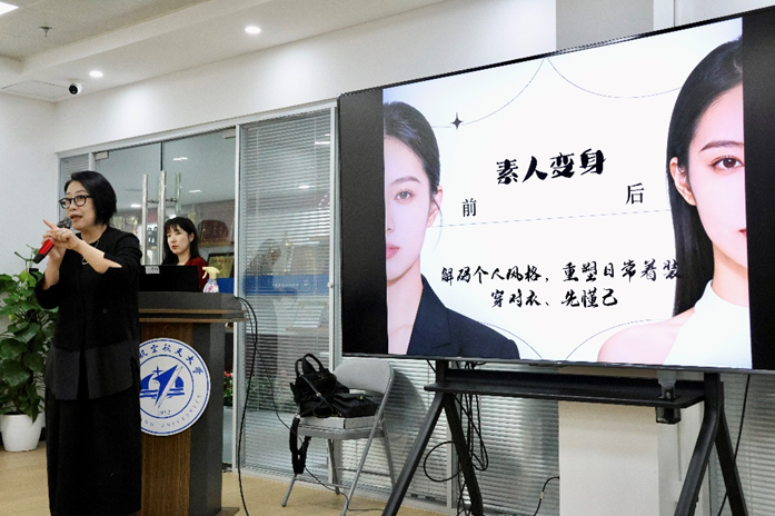 沙龙现场,嘉宾围绕职业女性形象管理核心要点展开精彩分享,从四季型风格理论讲解、不同身形扬长避短技巧,到利用色彩、面料打造职场造型,再到着装原则与职场仪态技巧,内容层层递进、干货满满。在素人变身环节,对女教职工代表进行妆发、穿搭等全方位改造,讲师实时解析搭配思路,直观呈现形象焕新效果,让在场女教职工沉浸式感受穿搭的魅力。互动答疑环节中,讲师针对大家在形象管理、服装搭配中的困惑逐一进行解答,现场交流氛围热烈。
