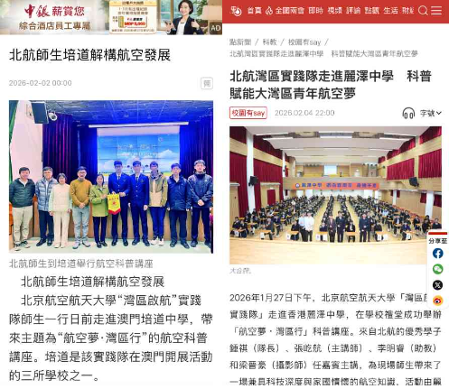 本次活动获得了《澳门日报》、香港《点新闻》等当地媒体的报道。实践队成员表示,飞行学院“湾区启航实践队”将持续践行北航人空天报国的精神,将北航文化、航空文化融入科普活动中,让更多湾区青少年认识、了解并走向航空,在青少年心中种下航空梦想的种子。同时,进一步点燃他们对航空领域的强烈兴趣与探索热情,为粤港澳大湾区的航空事业积蓄潜在人才,助推大湾区航空产业的长久发展。