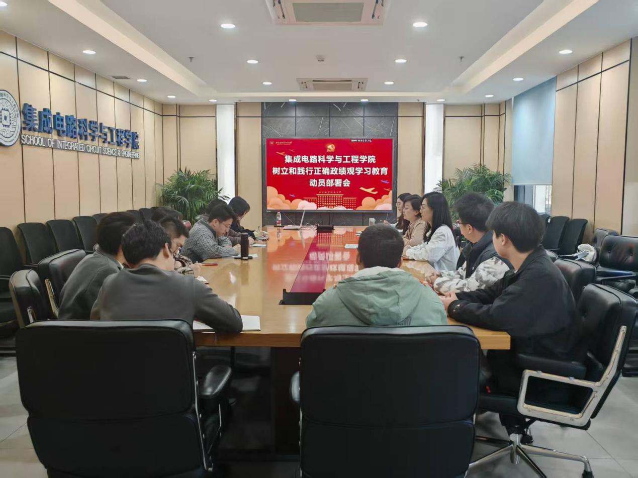 北航新闻网3月13日电(通讯员 胡晏铭)为深入学习贯彻习近平总书记关于树立和践行正确政绩观的重要论述,全面落实学校党委有关部署要求,近日,集成电路科学与工程学院召开树立和践行正确政绩观学习教育动员部署会,对学院学习教育工作进行动员部署,进一步统一思想、明确任务、压实责任。