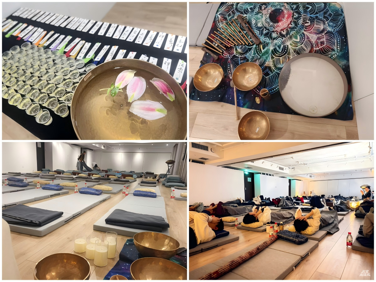 本次活动以 “春生养息” 为核心,将东方传统养生理念与自然声音疗愈深度融合,兼具仪式感与治愈性。活动以净手净口的雅致仪式开场,伴随颂钵轻鸣唤醒身心能量,轻柔涤荡日常疲惫;在春日正念冥想环节,教职工们跟随引导沉心内观,舒缓精神,感受春日生机;现场还奏响融合风声、海浪、鸟鸣、溪流的自然声韵乐器,灵动天籁环绕全场;最后以舒缓体式放松肩颈腰背,精准缓解身体紧绷,唤醒全身活力。