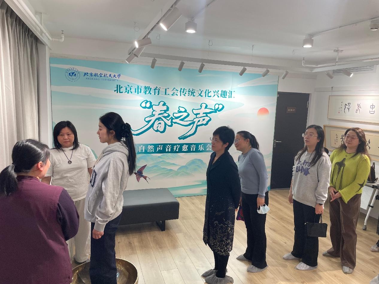 北航新闻网3月20日电(通讯员 张芳/文 王杰/摄影)春风送暖,万物焕新。为舒缓首都教职工工作压力、调养身心状态,传承传统养生智慧,3月18日,由北京市教育工会主办、北京航空航天大学工会承办的 “春之声” 自然声音疗愈音乐会 ,在北京航空航天大学校友之家二层艺术展厅温情启幕。来自首都教育系统的近百名教职工齐聚一堂,在自然天籁与颂钵清音中沉浸式疗愈,共赴一场春日身心滋养之旅。