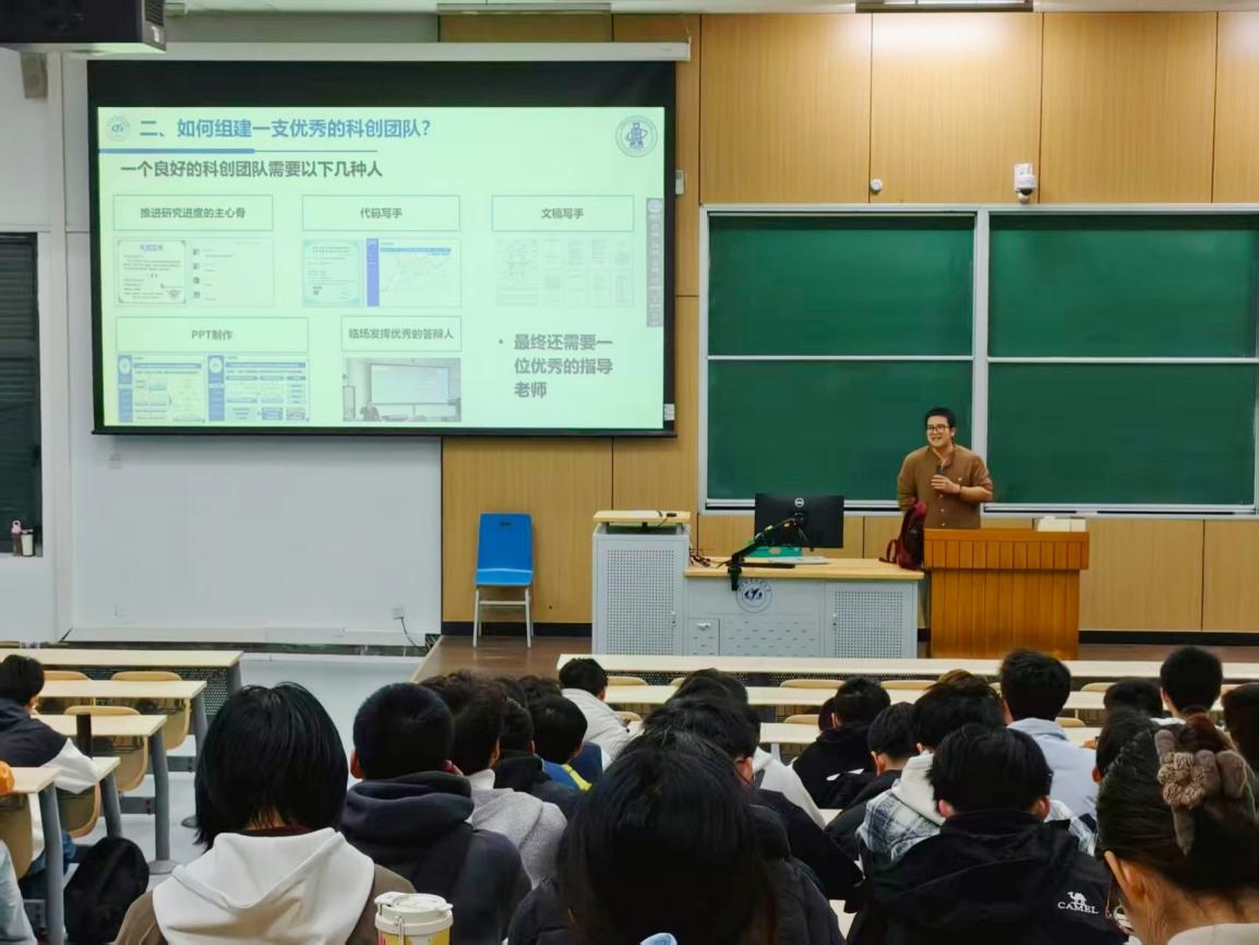 本次分享会上,两位同学结合自身参赛经历,从不同维度分享了宝贵经验,为同学们解答了在科创备赛中的困惑,进一步激发了大家参与科技创新的热情,助力同学们在科创道路上稳步前行。
