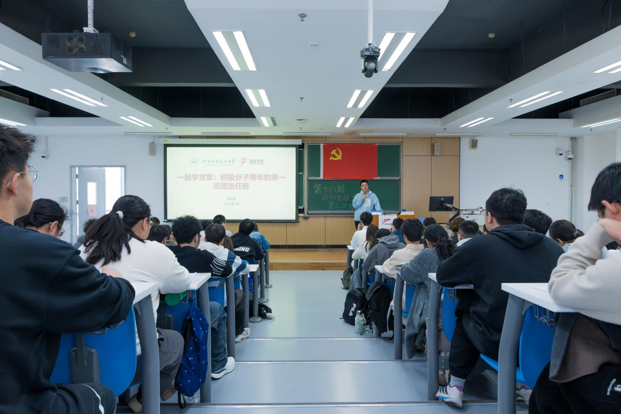 北航新闻网3月22日电(通讯员 姜雅文 刘怡宁/文 邱星宇/摄影)3月22日,第十八期冯如党建工作坊第二次党课在沙河校区J3-212教室举行。冯如书院执行院长李俊良以“学习党章:积极分子青年的第一项政治任务”为题主讲本次党课。第十八期党建工作坊全体学员参与学习。