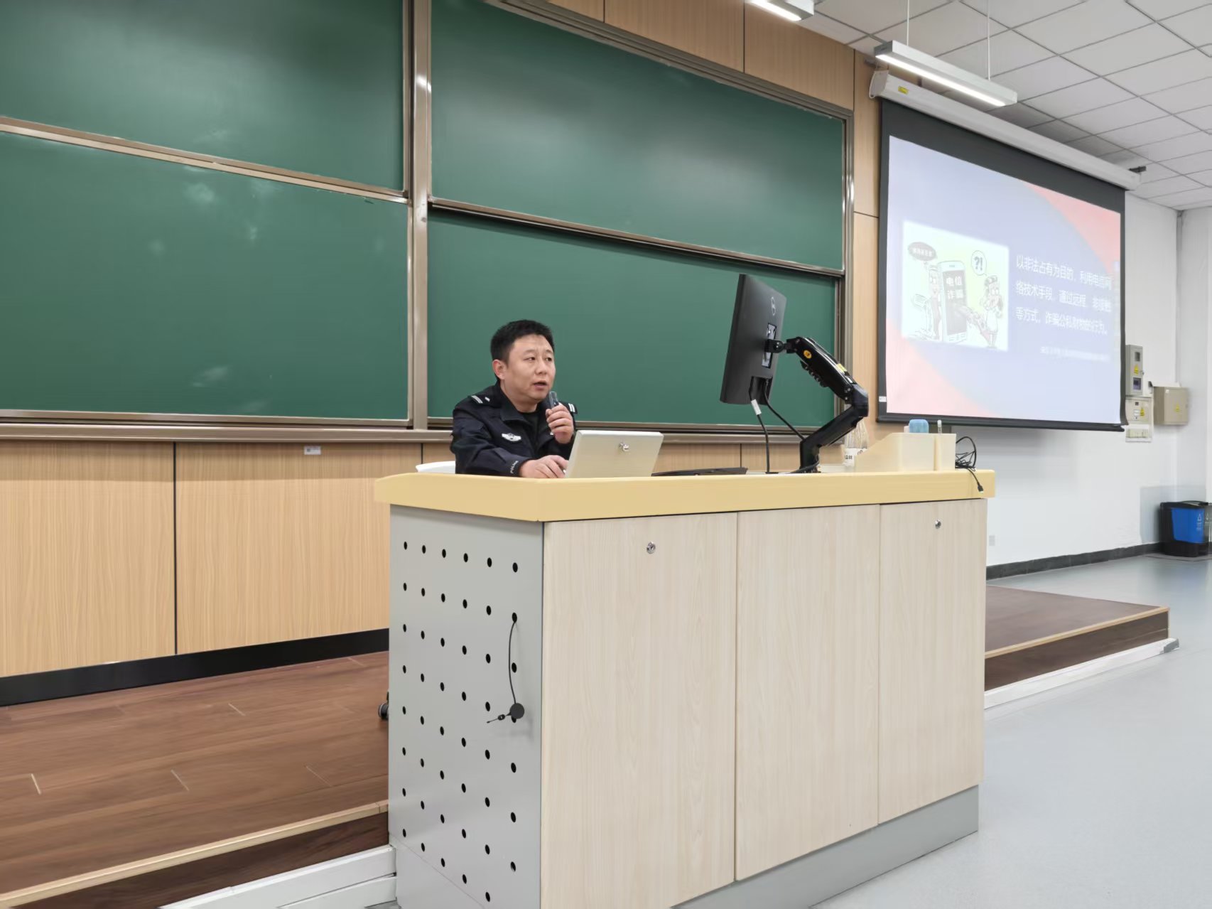北航新闻网4月2日电(通讯员 陈贝)为有效提升校园反诈工作的精准性与实效性,切实守护师生的生命财产安全,4月1日上午,传源书院邀请花园路派出所副所长李博洋走进学院路校区主M102教室,举办“防范电信网络诈骗——织密防护网,守好钱袋子”主题宣讲活动。书院执行院长郭伟丰主持活动,185名学生现场聆听。