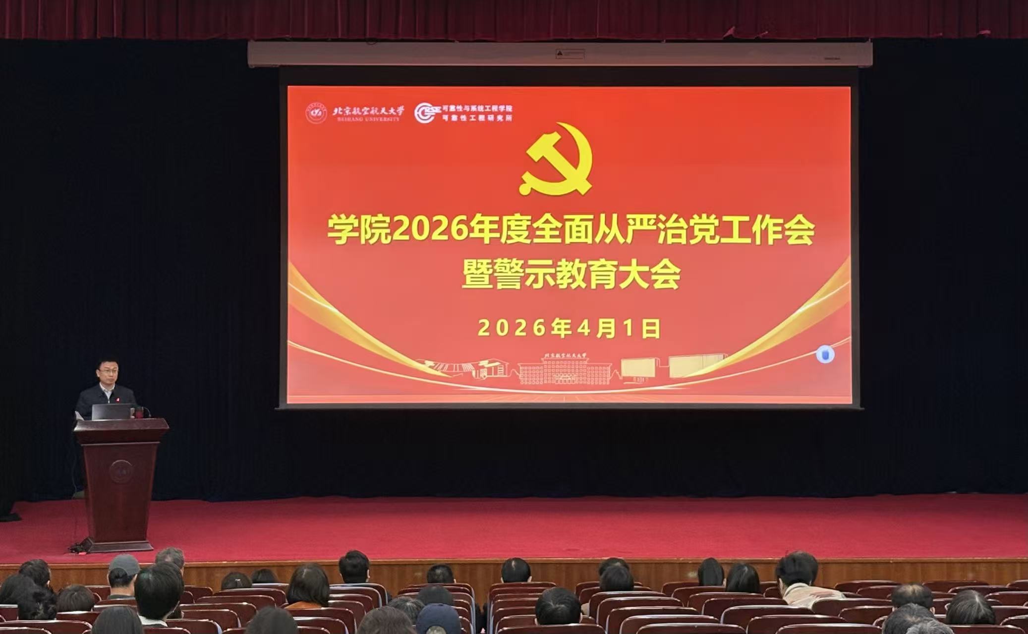 北航新闻网4月2日电(通讯员 向妮)4月1日,可靠性与系统工程学院召开2026年全面从严治党工作会暨警示教育大会,以习近平新时代中国特色社会主义思想为指导,全面贯彻党的二十大和二十届历次全会以及二十届中央纪委五次全会精神,坚定不移深入推进全面从严治党,以清廉务实之风引领保障学院各项工作高质量发展。学院党委书记查国清主持会议,全体教职工参会。