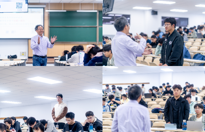在互动环节,同学们围绕AI辅助学习、专业学习必备素养等话题踊跃提问。张有光一一耐心解答,现场气氛热烈。他鼓励同学们善用工具而不依赖工具,保持质疑、追问与独立思考的习惯,方能在AI时代行稳致远。
